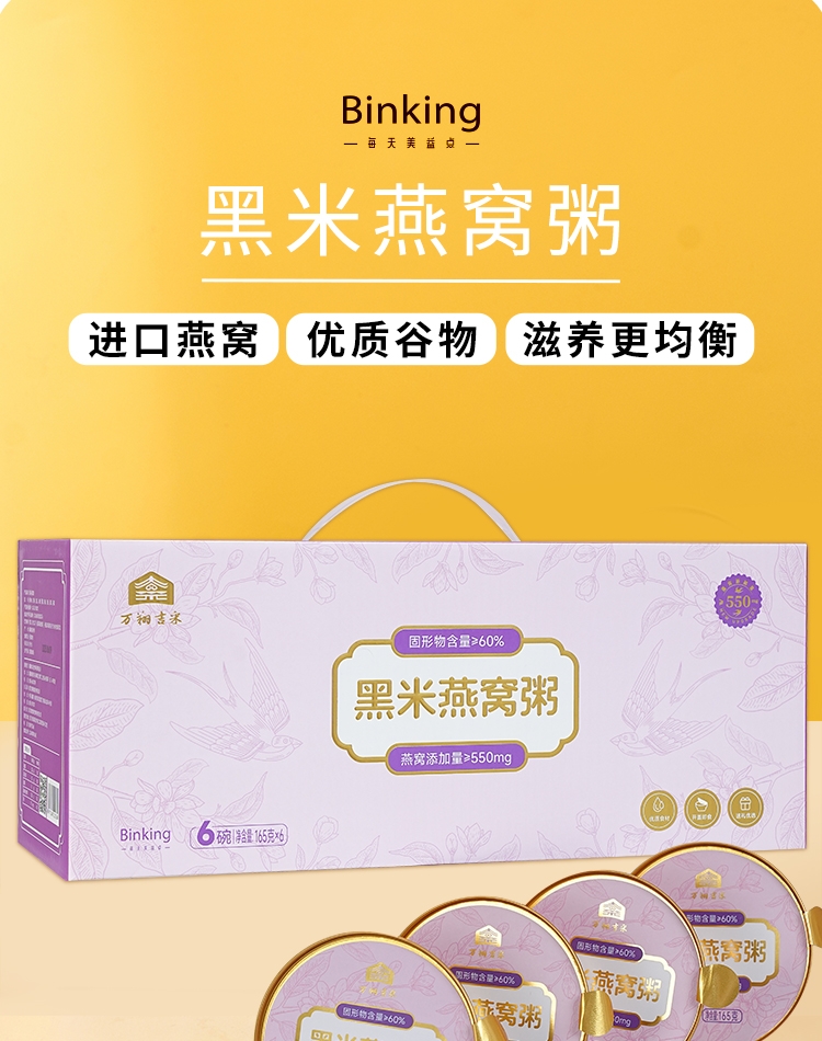 BINKING 黑米燕窝粥165g*12碗YFKJ-003