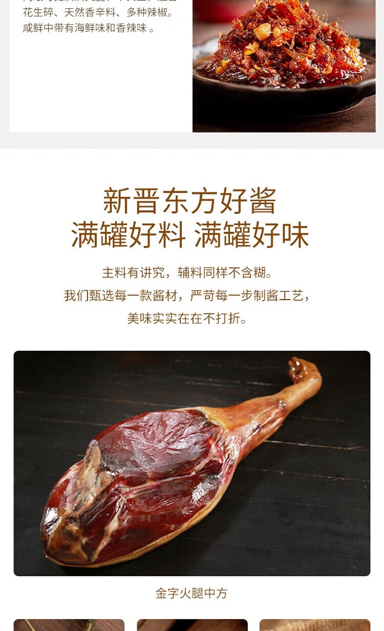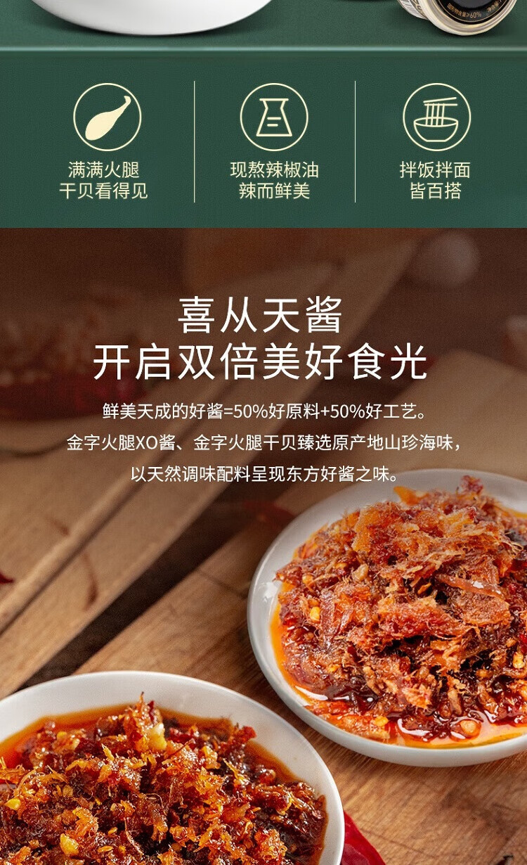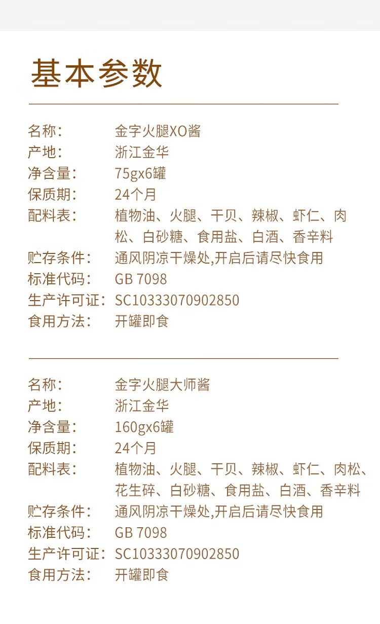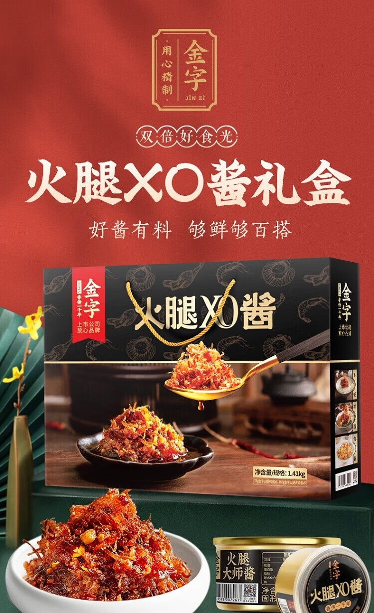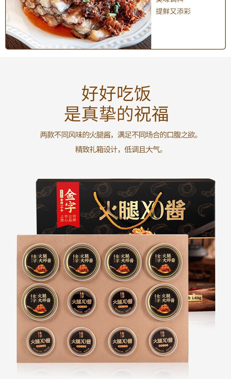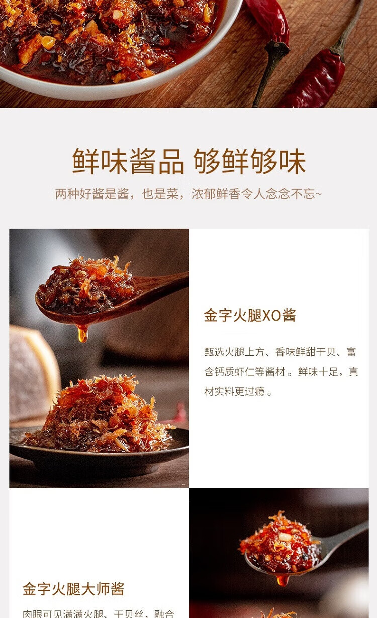 配置:火腿XO酱75g*6罐 火腿干贝酱160g*6罐