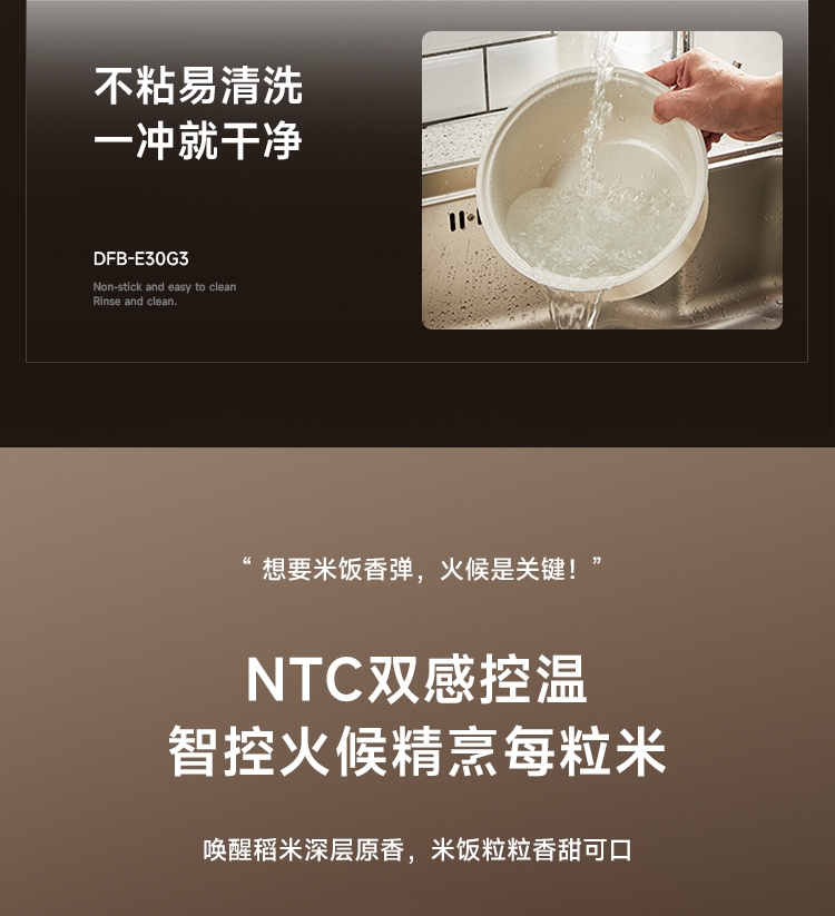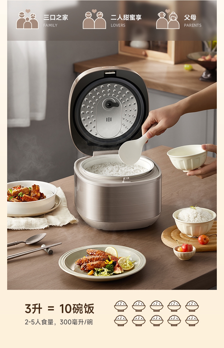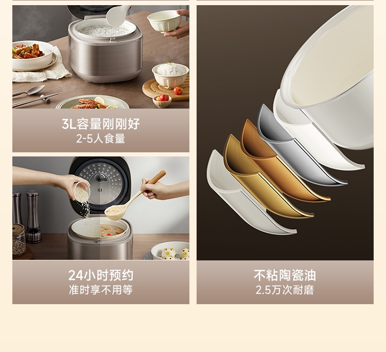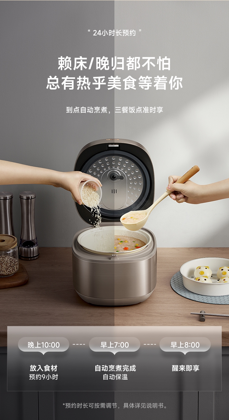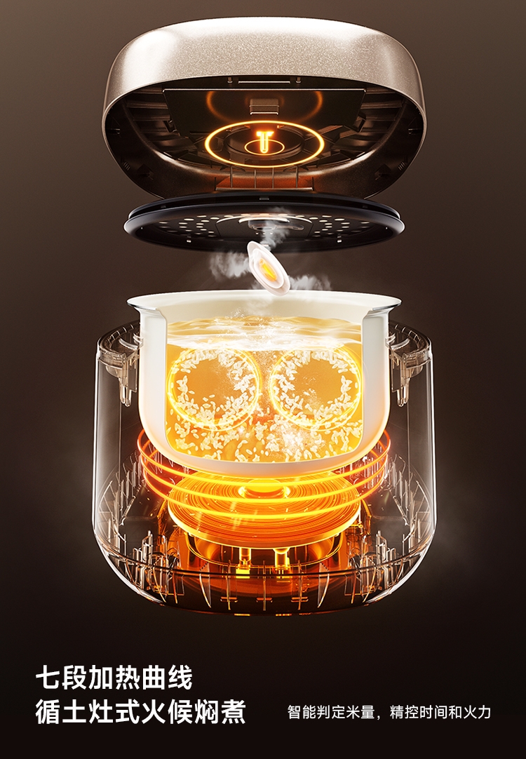 3升抗菌柴火灶釜;顶置高清大屏;24小时预约准时享不用等