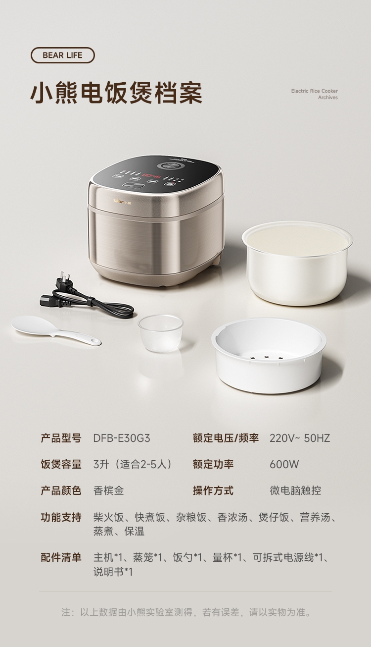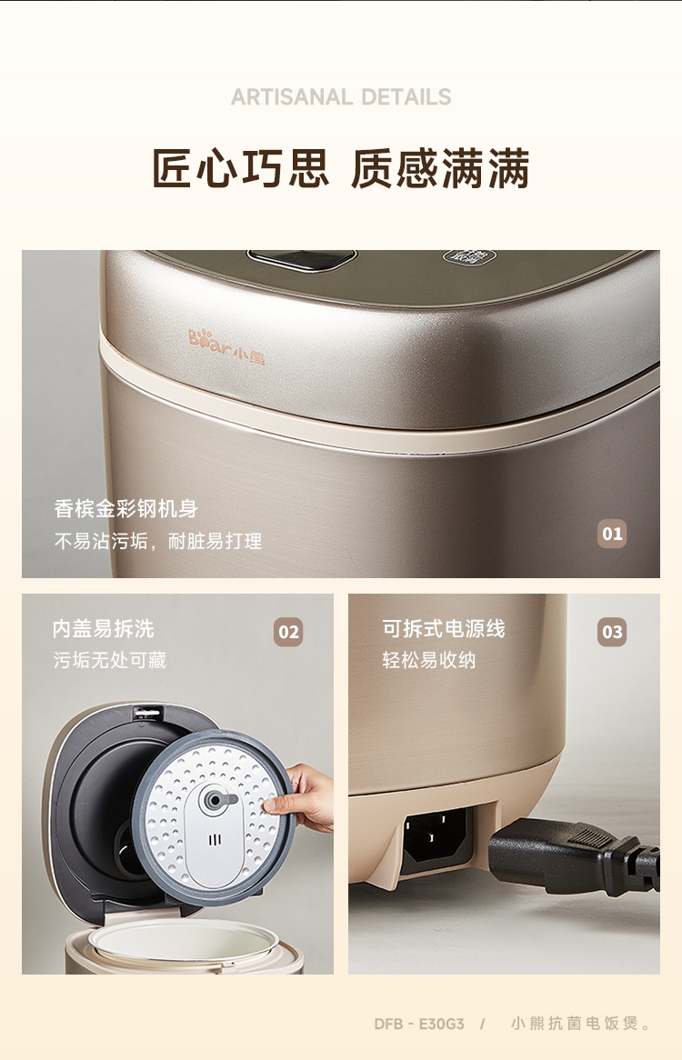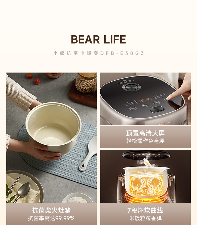 小熊 智能电饭煲彩钢机身3LDFB-E30G3