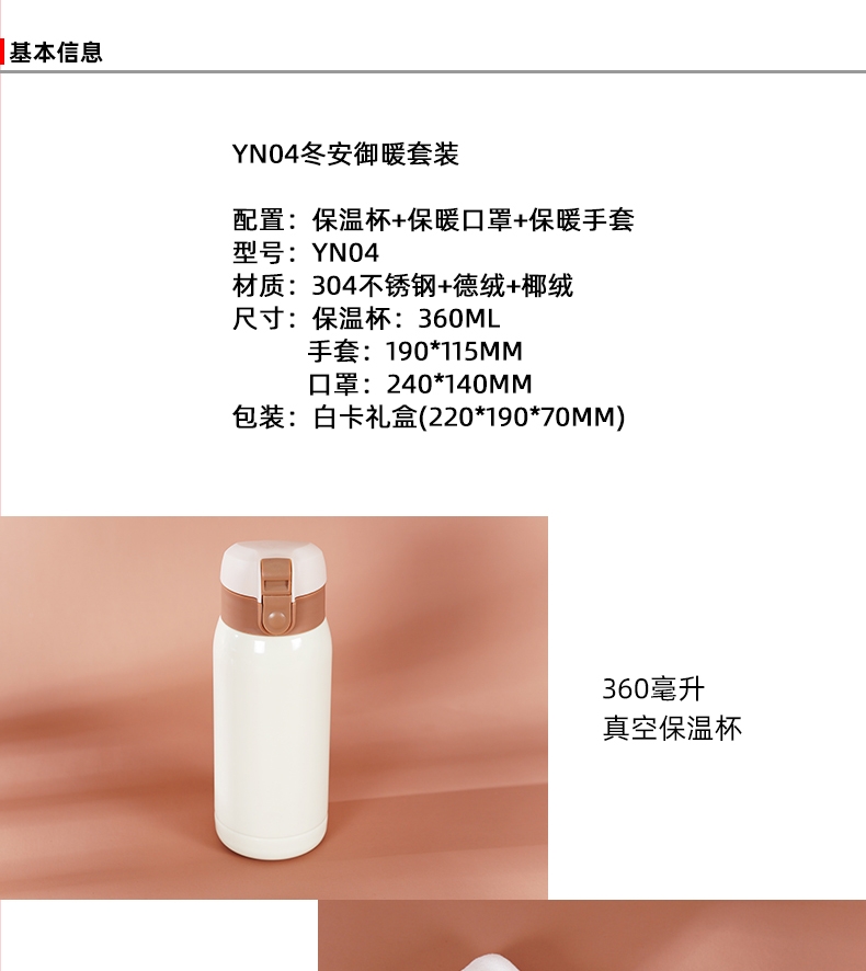 尺寸:保温杯:360ml 手套:190*115mm 口罩:240*140mm