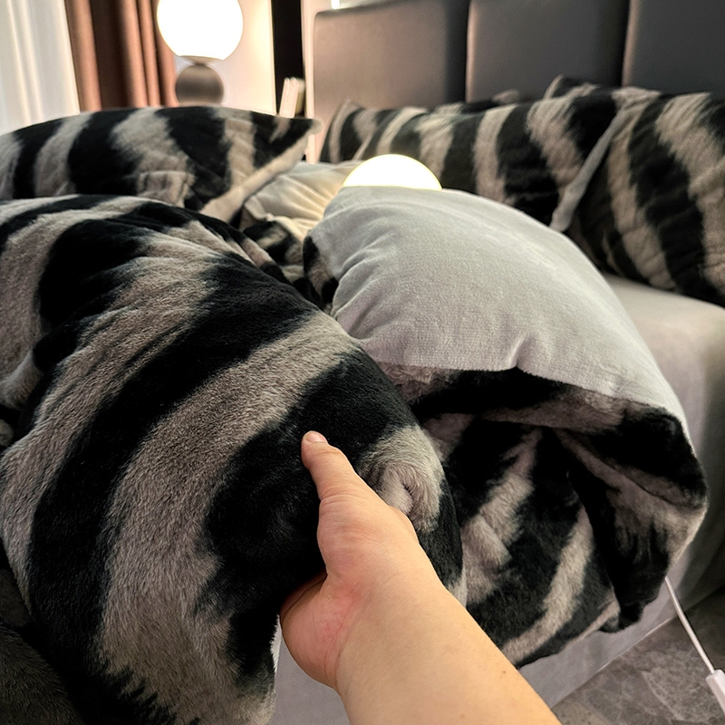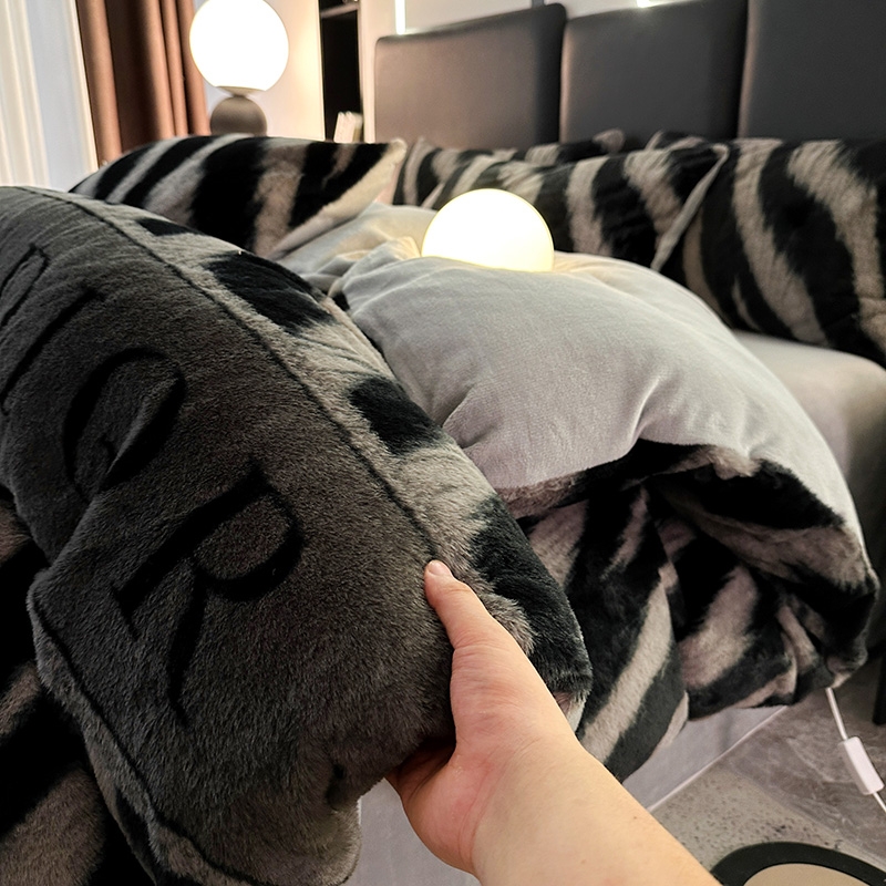 兔毛绒面料 具有柔软及紧密的特点 纤维细长有韧性;加厚兔毛绒面料具有柔软紧密的特点纤维细长有韧性触感;摸上去就感觉软软舒适的床上用品是自带好感的居家好物