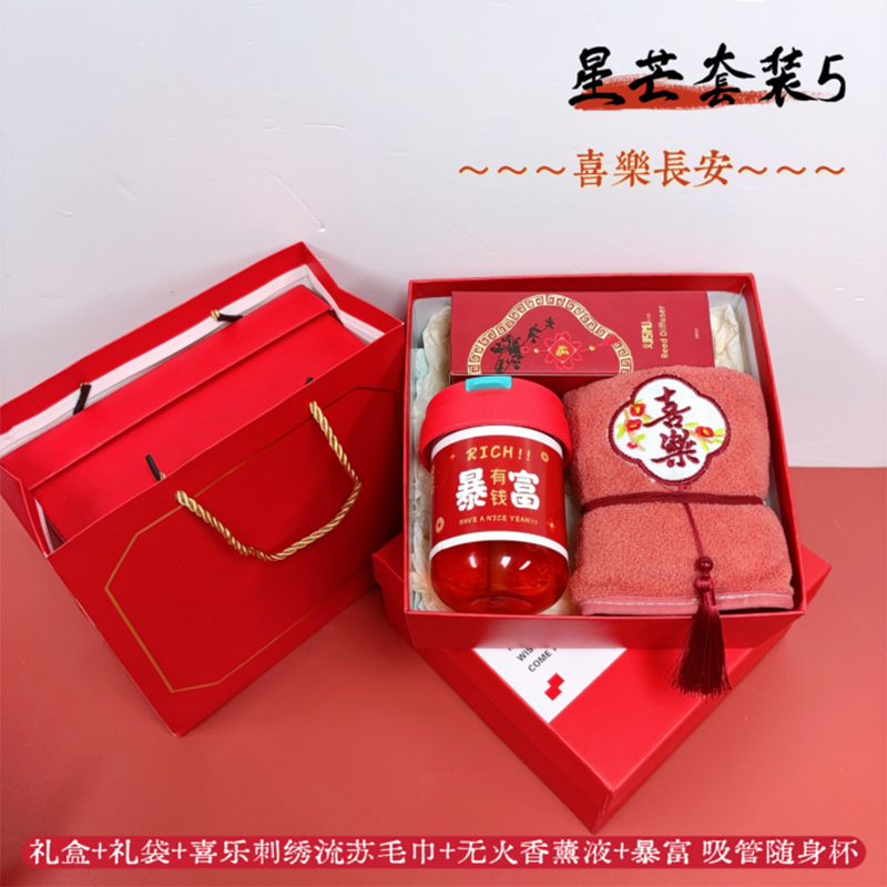 星芒套装5 :喜乐刺绣毛巾 无火香薰液 暴富吸管杯