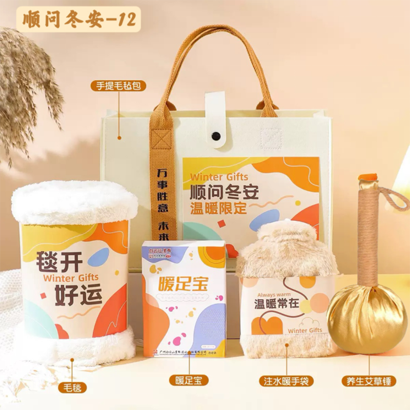 顺问冬安套装12:手提毛毡包35*23*10 毛毯70*100(毯开好运) 暖足宝3贴/盒 注水暖手袋1000ml 养生艾草锤