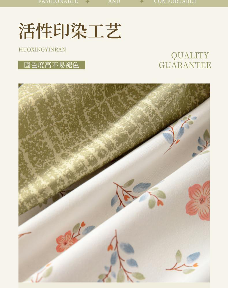 A、B 版设计,陪伴您好心情;;活性印染工艺,牢固不退色;;彩盒、无纺布两种包装,满足集采、代发需求。