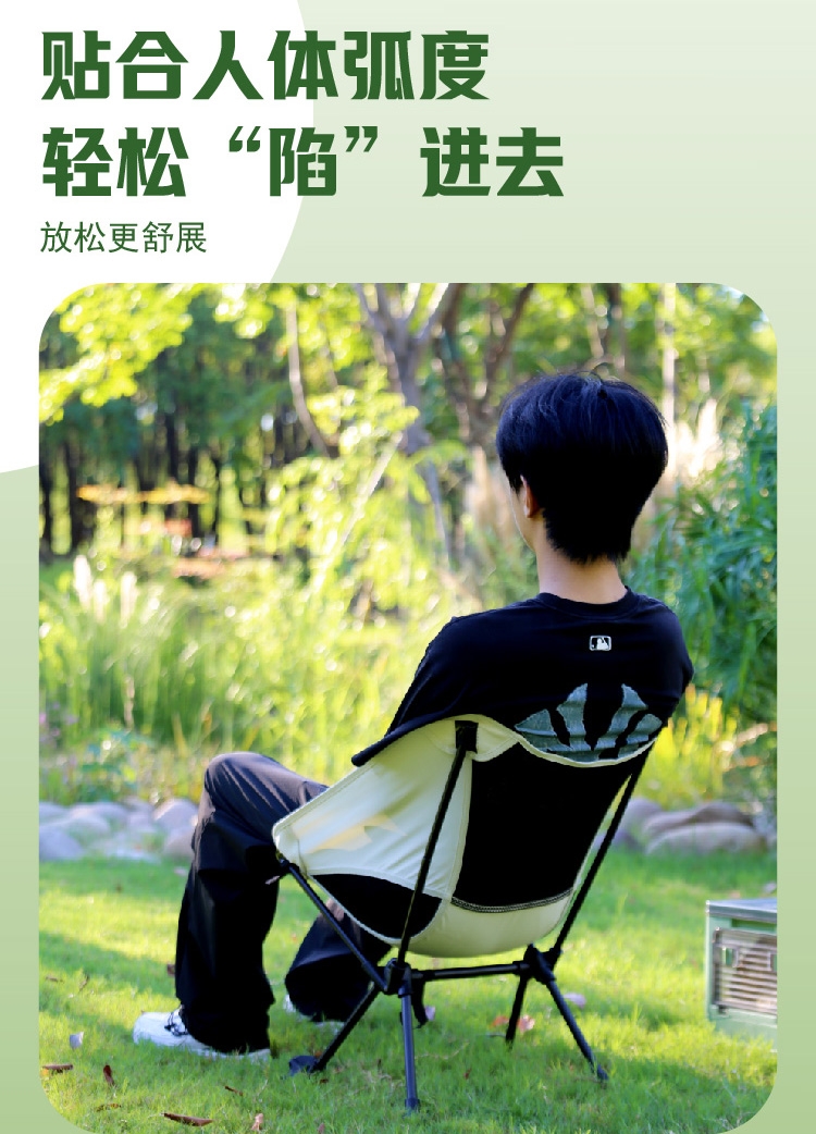 独特魔术折叠设计,轻便易携不占空间;椅身贴合人体曲线,坐感舒适;外露营、室内休闲都能让你轻松“陷”入惬意时光
