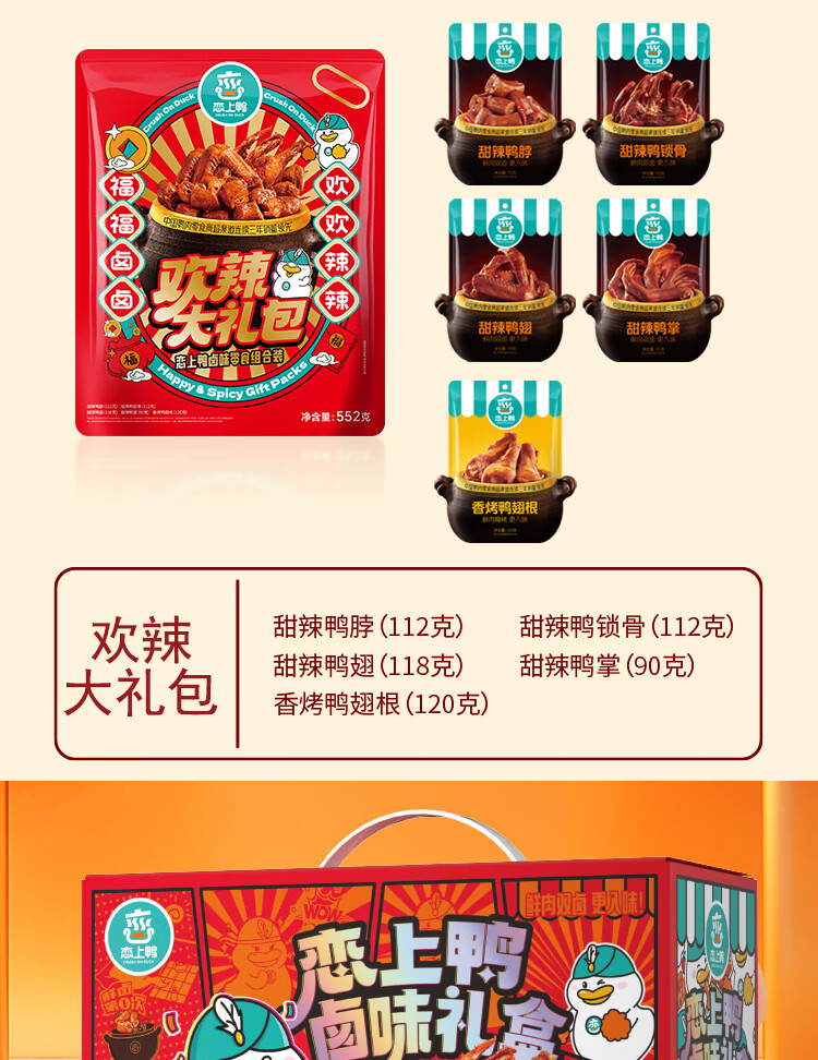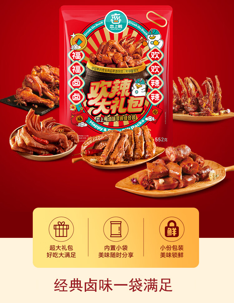 恋上鸭卤铺通过年轻时尚的品牌表达 ;保证产品鲜醇的口感;创造产品独特的口味 优选鲜肉原料
