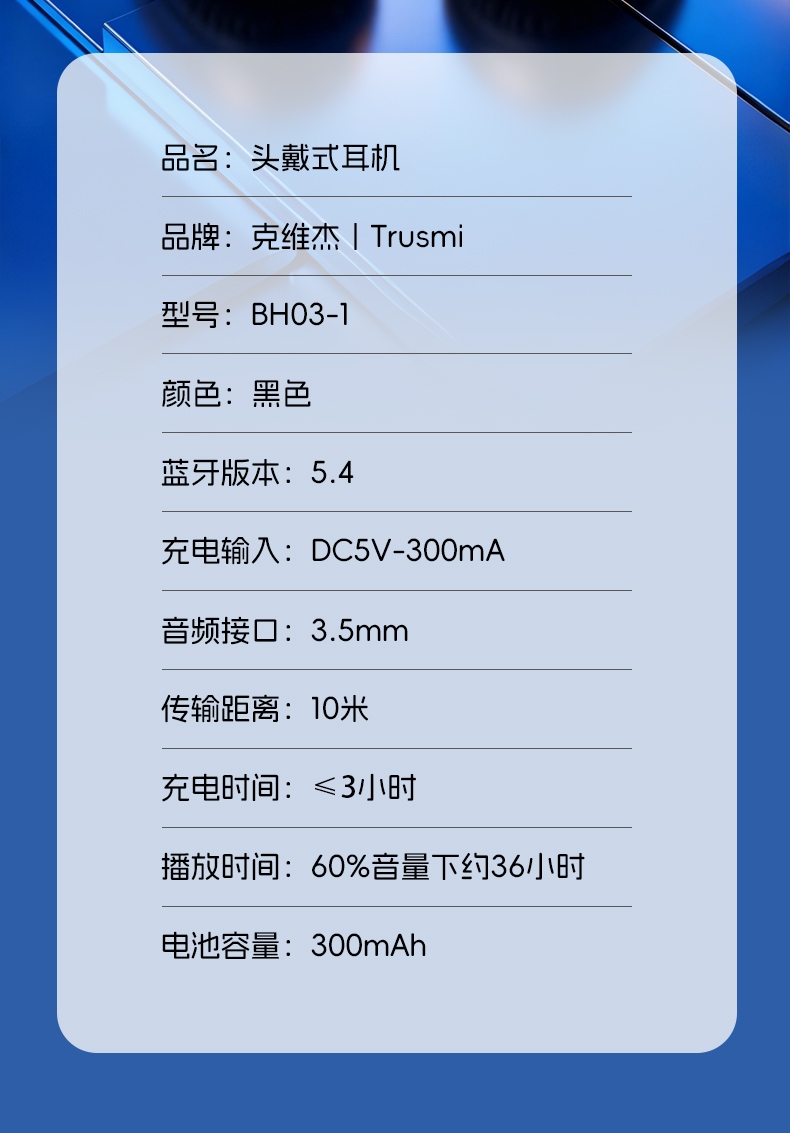 克维杰 头戴式耳机黑色BH03-01