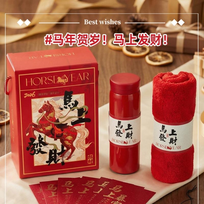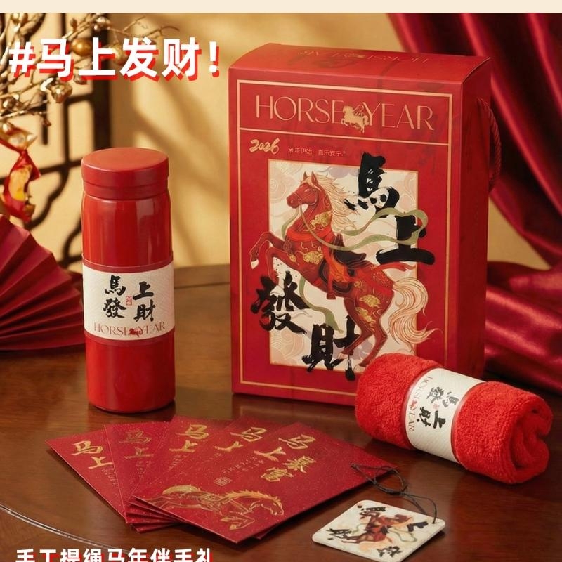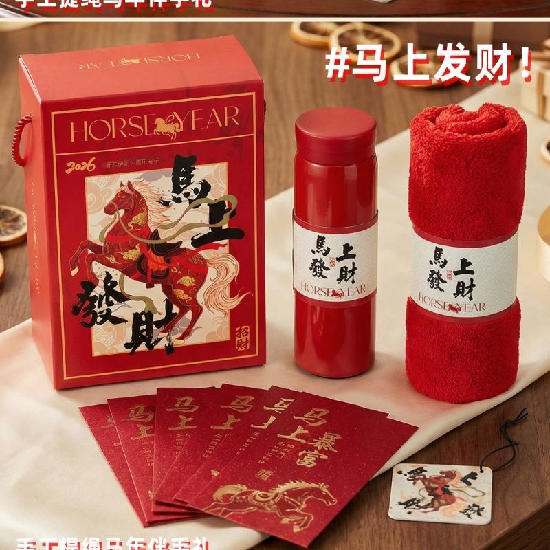 组合:保温杯、马年红包*6张、马上发财毛巾、马上发财香片香挂