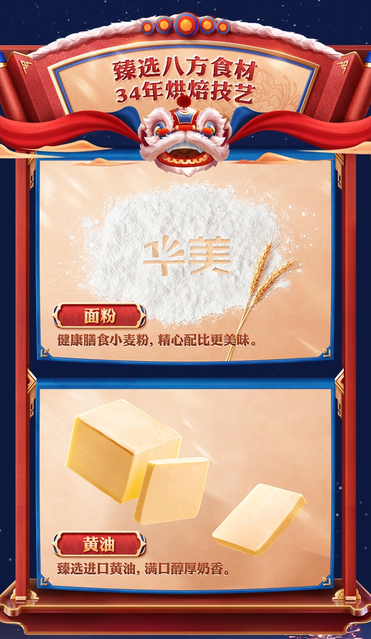 健康膳食小麦粉,精心配比更美味。;臻选进口黄油,满口醇厚奶香。;健康膳食小麦粉,精心配比更美味