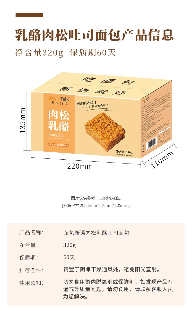 面包新语 肉松乳酪吐司320g*2箱