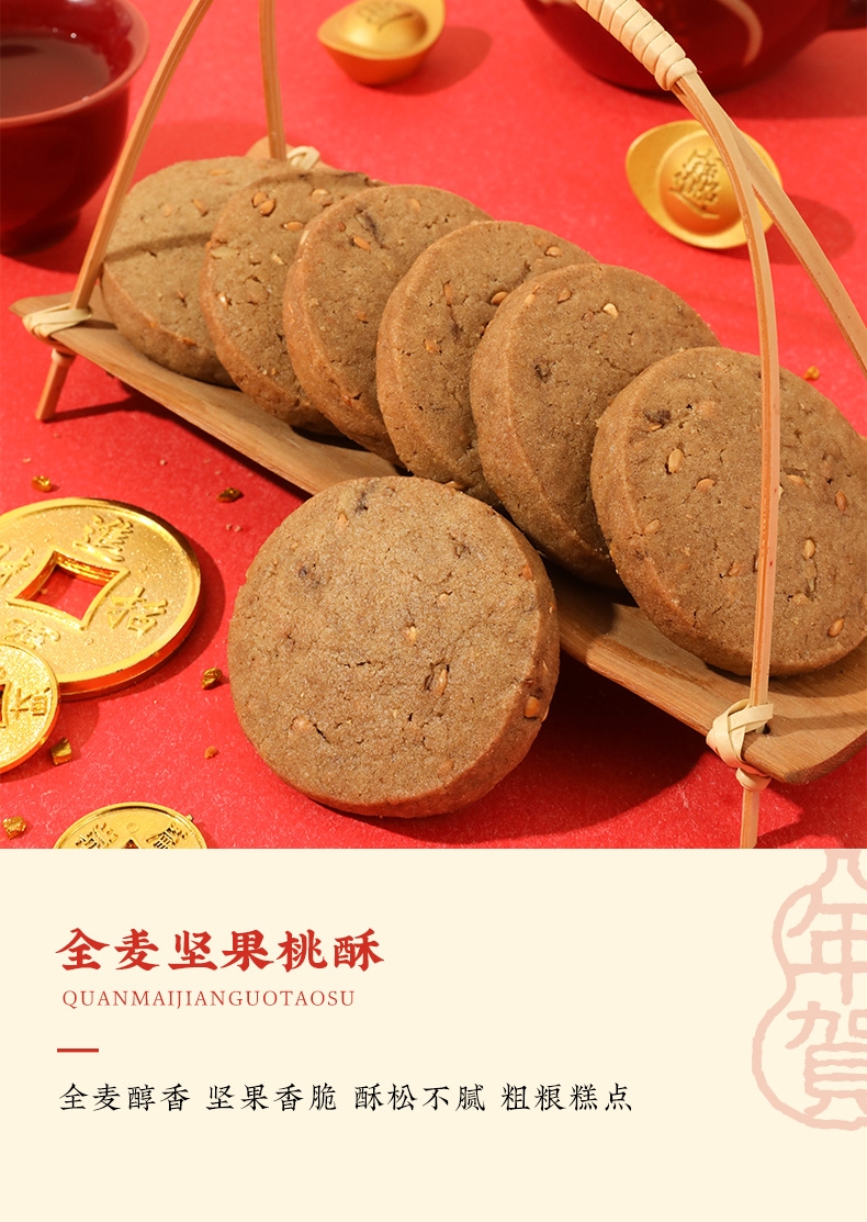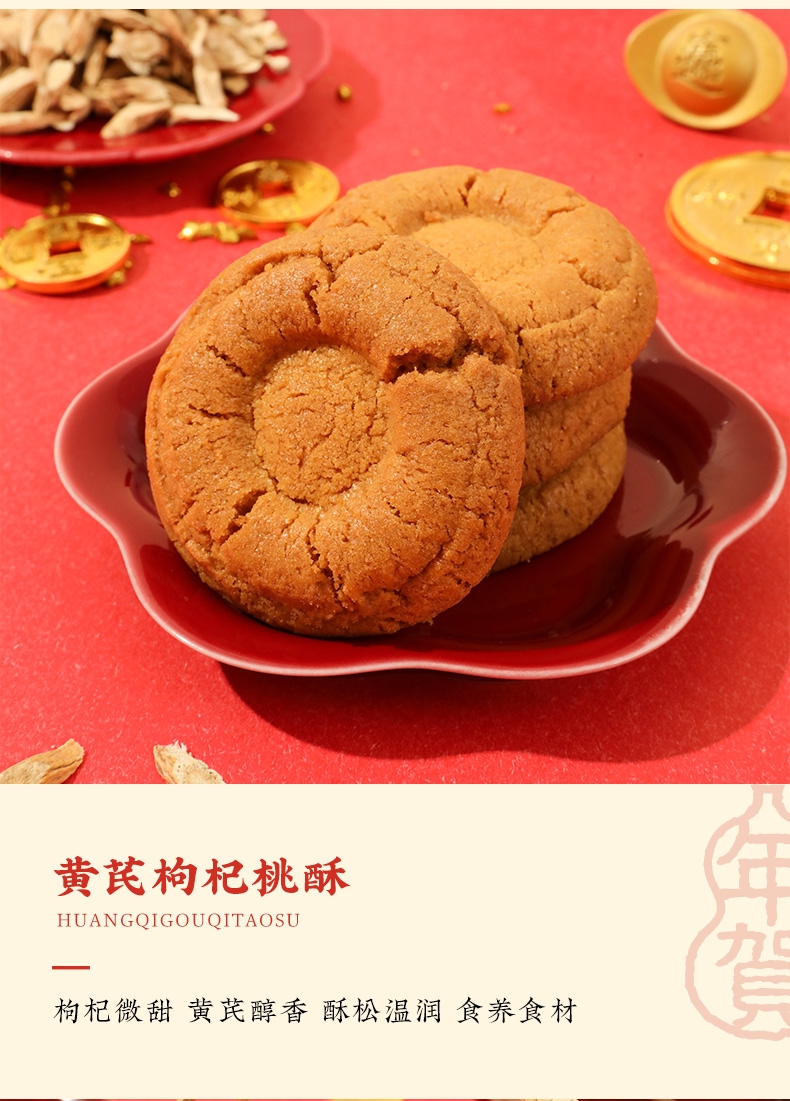 配置清单:低糖原味桃酥15g*30 黄芪枸杞桃酥20g*20 全麦坚果桃酥20g*20