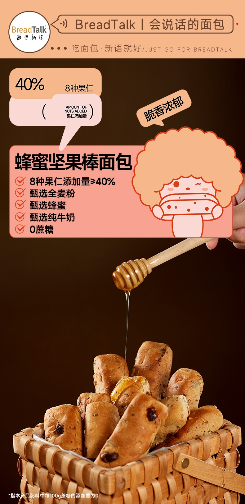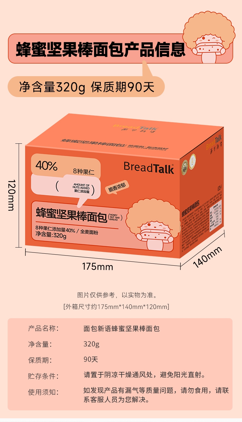 面包新语 蜂蜜坚果棒面包320g