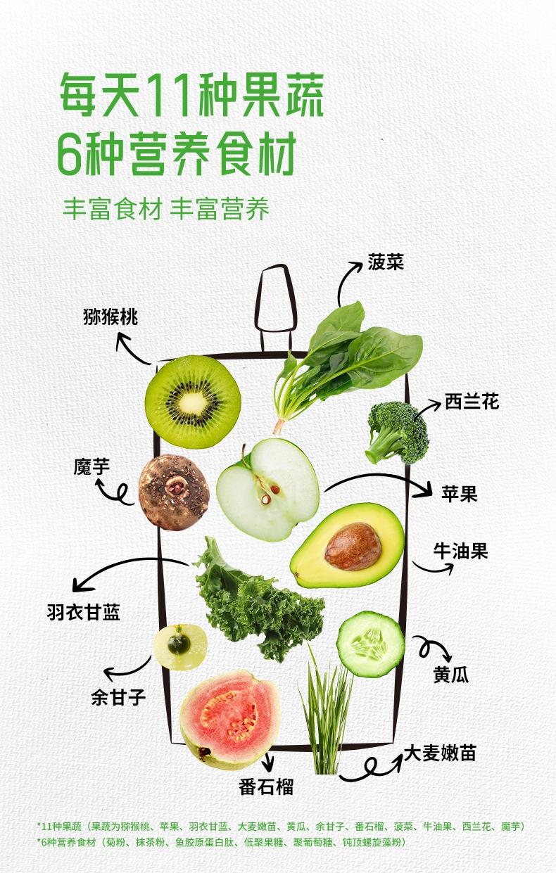 1口喝掉11种果蔬;富含膳食纤维;可以喝的果蔬沙拉