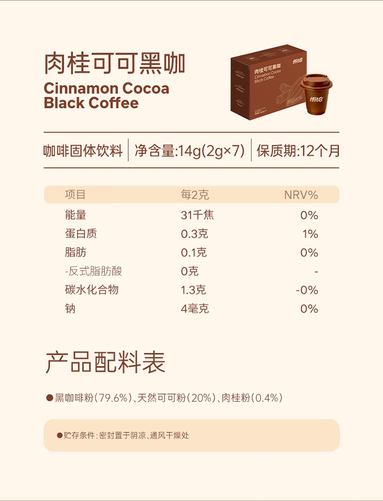 ffit8 肉桂可可黑咖啡14g*3盒装FZH51698