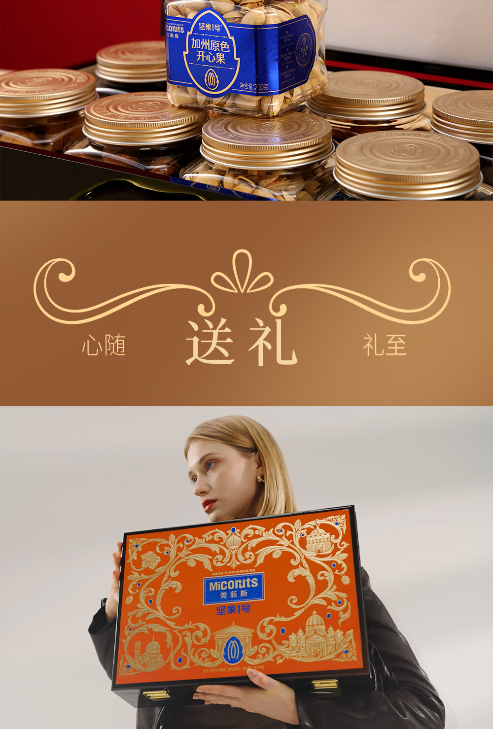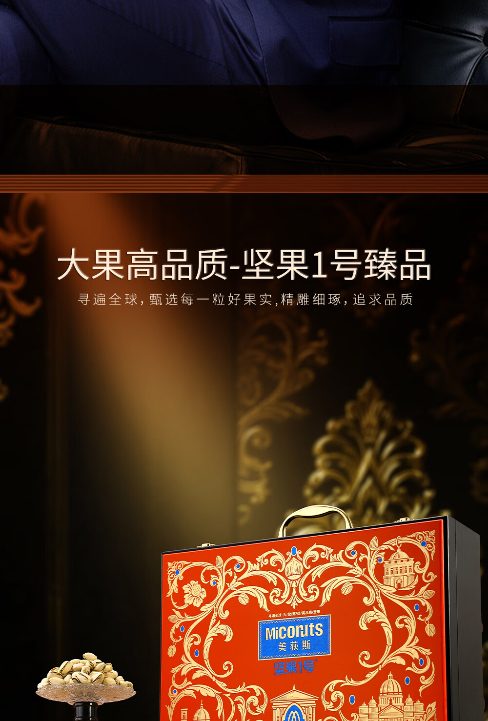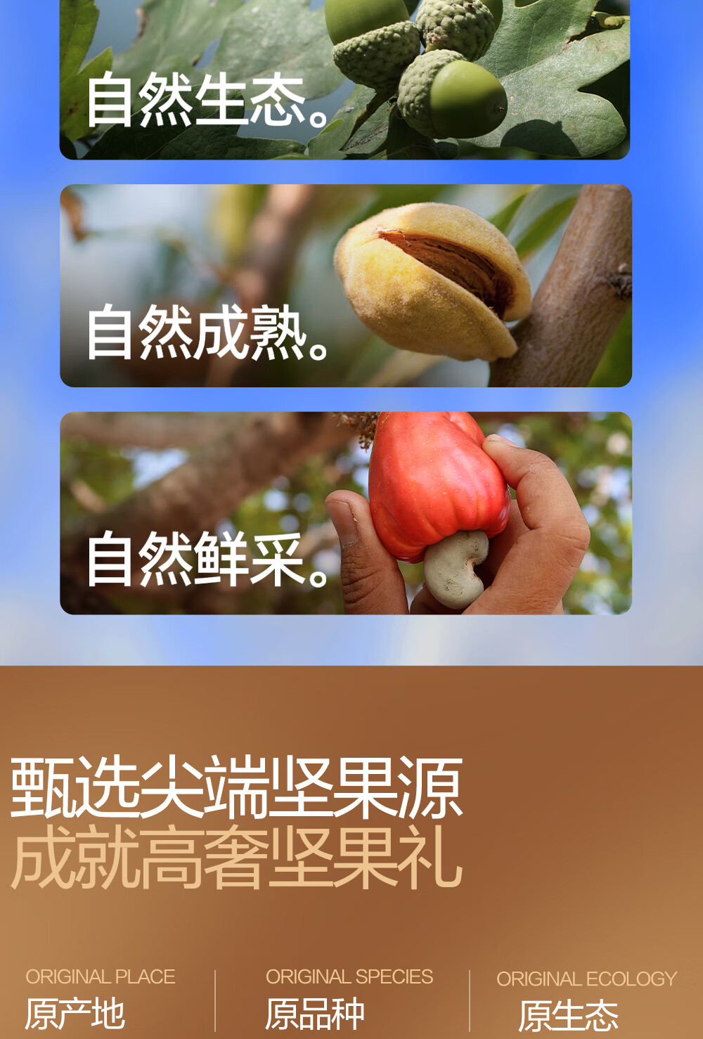 甄选尖端坚果源;成就高奢坚果礼;工艺锁鲜,慢烤锁住营养