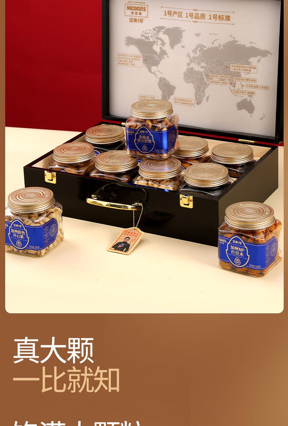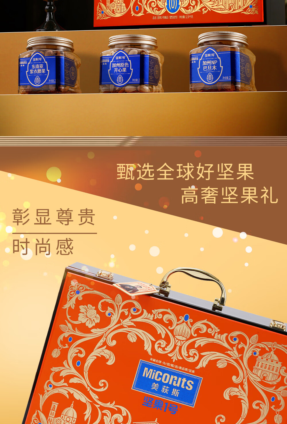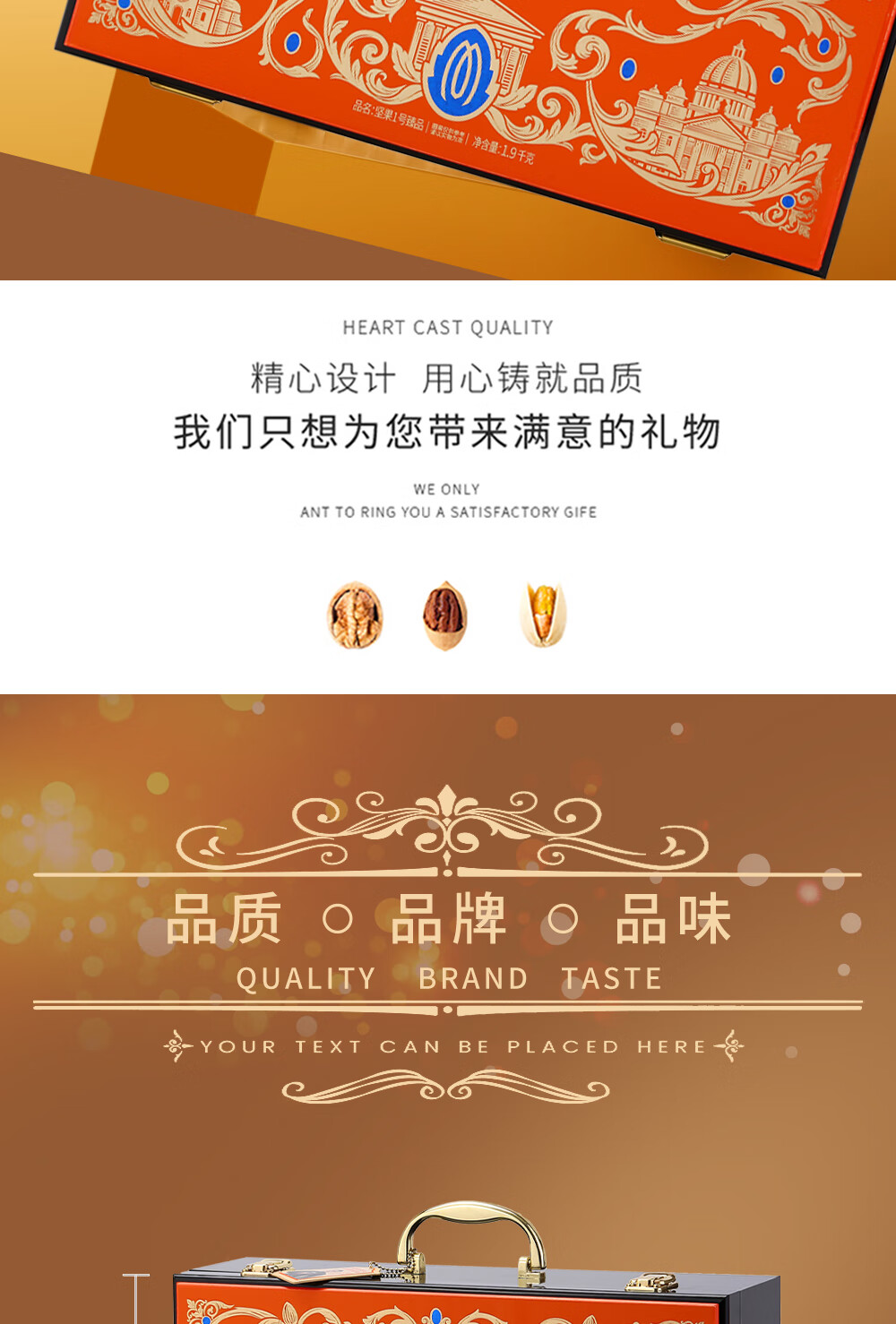 甄选尖端坚果源;成就高奢坚果礼;工艺锁鲜,慢烤锁住营养