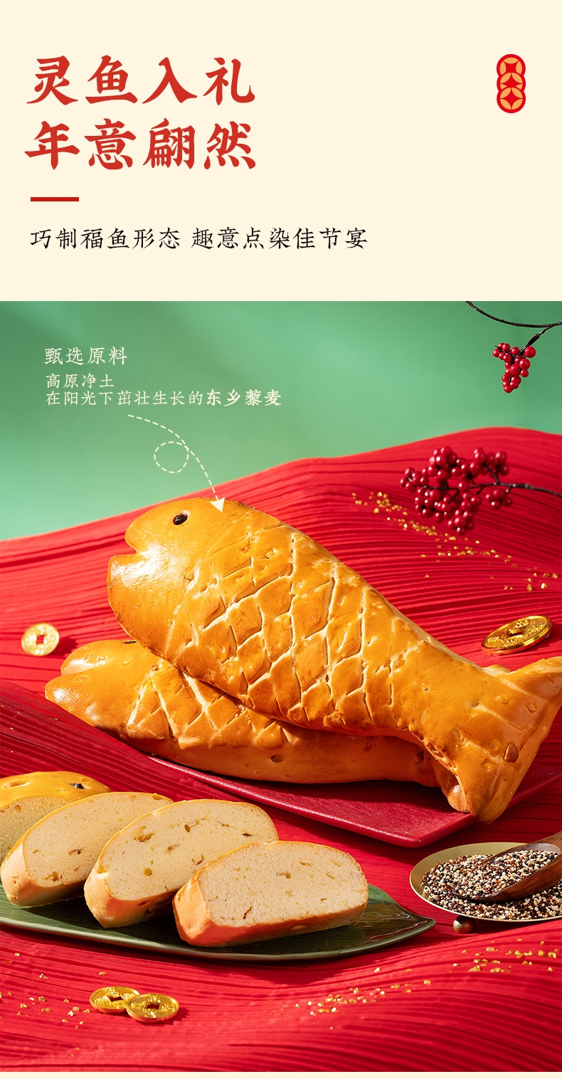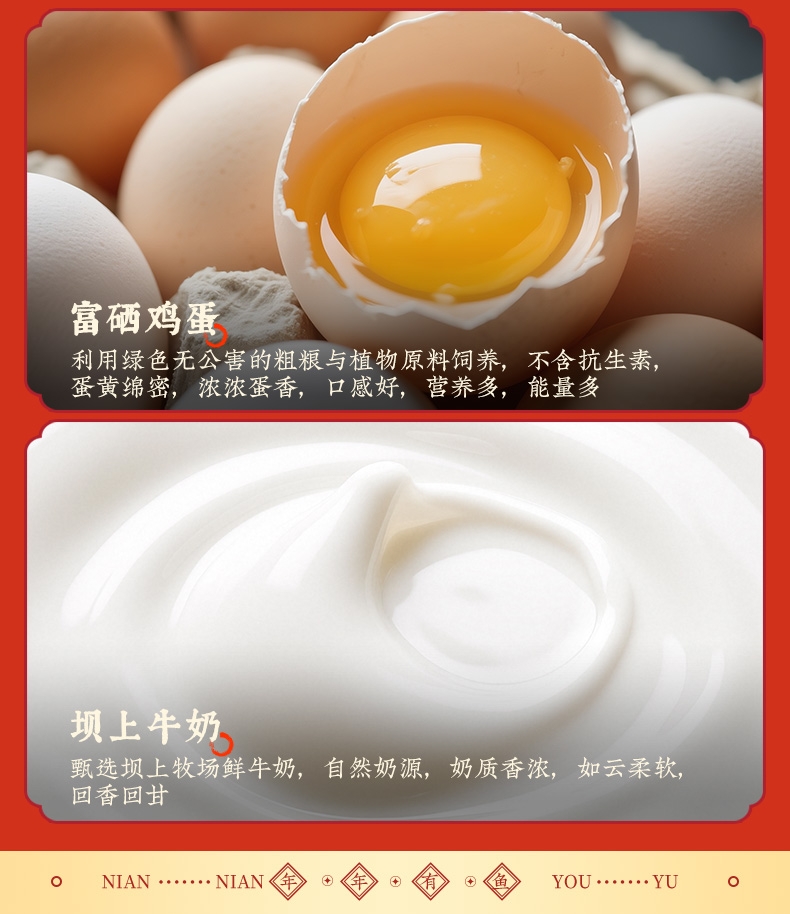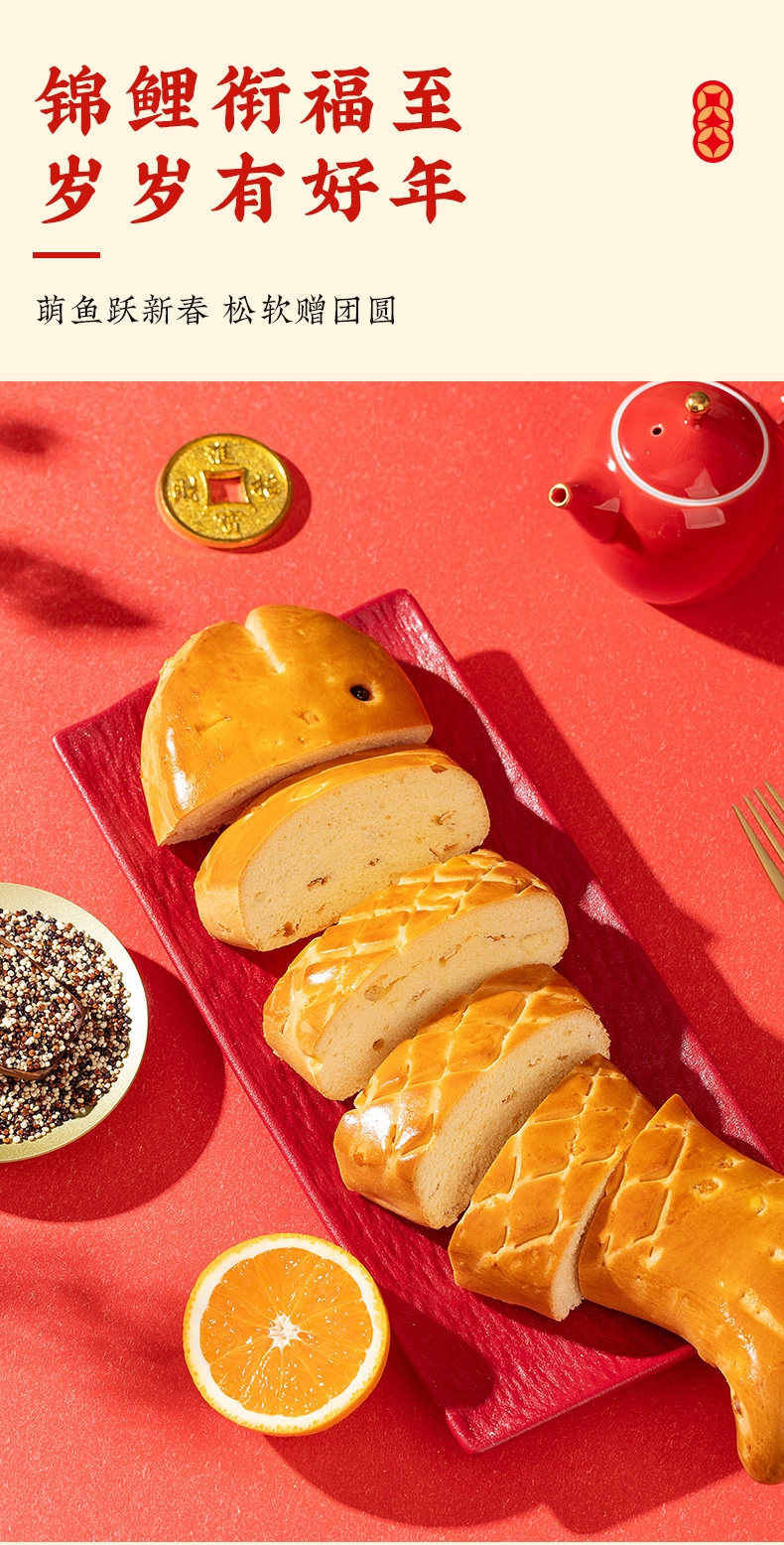 产品以外形可爱的鱼造型呈现,生动有趣,代餐心选;甄选富硒鸡蛋,蛋香浓郁,营养多,美味多;以年年有鱼造型呈现,趣味十足