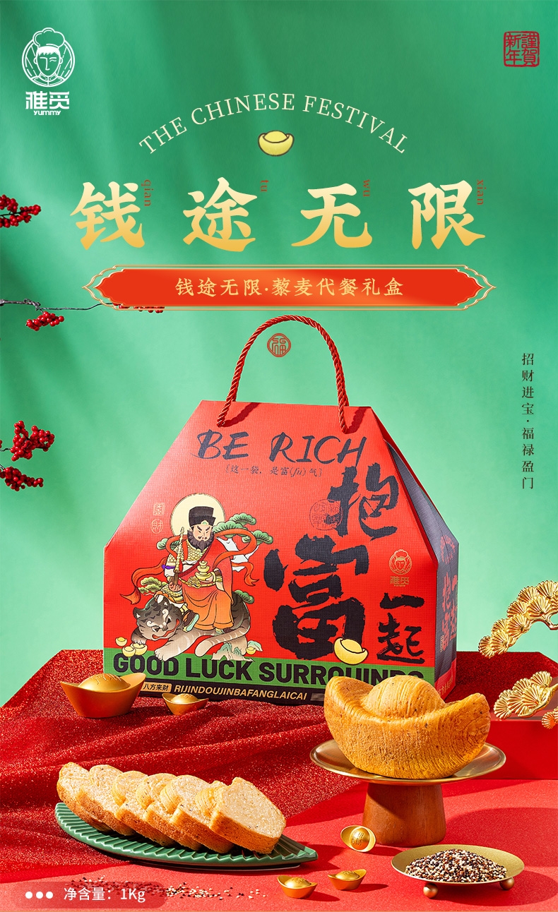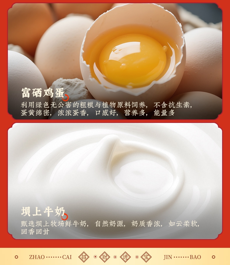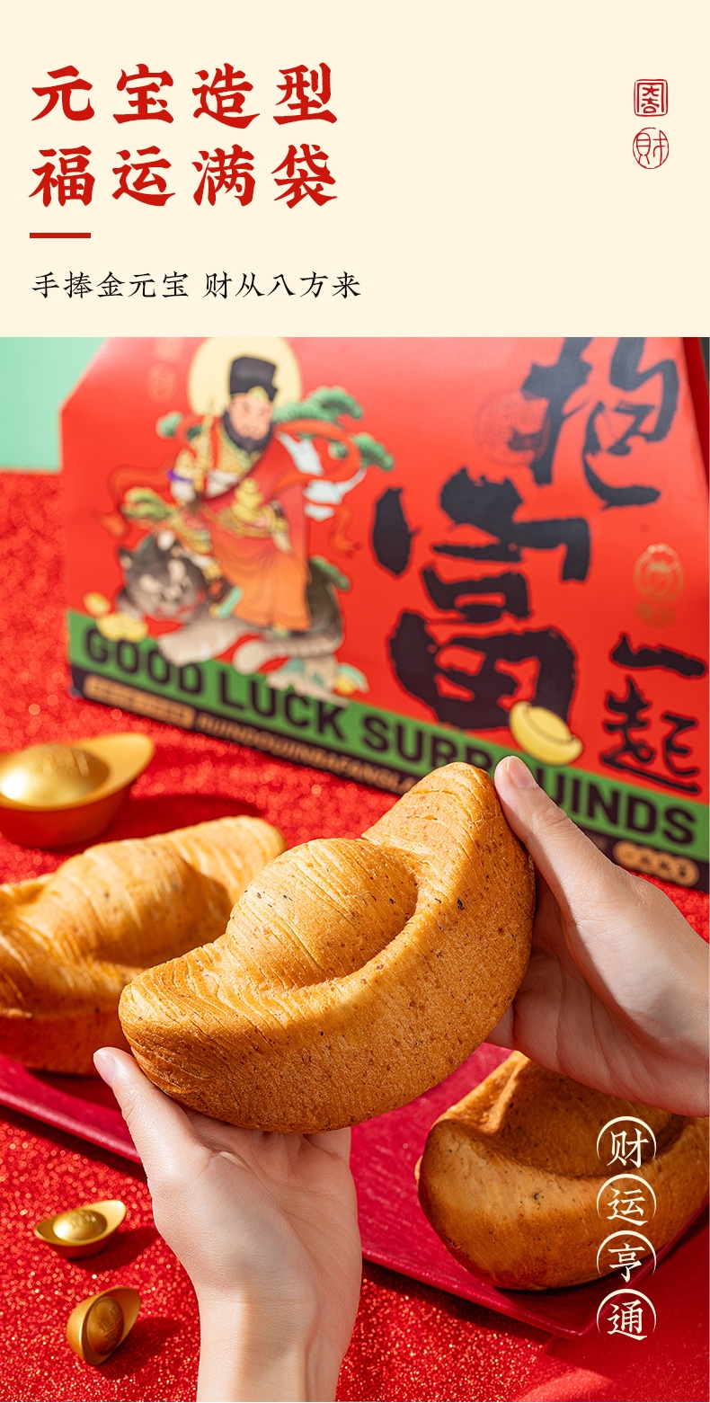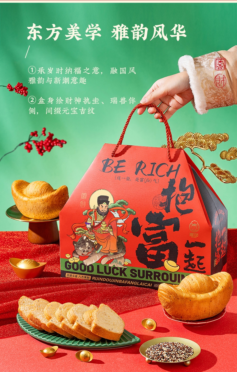 纯牛奶和面,使得面包体组织更加细腻,奶香浓郁;不添加香精色素防腐剂,老少皆宜,食用更放心;契合新春等节日礼品场景,创新加入东乡藜麦,提升营养