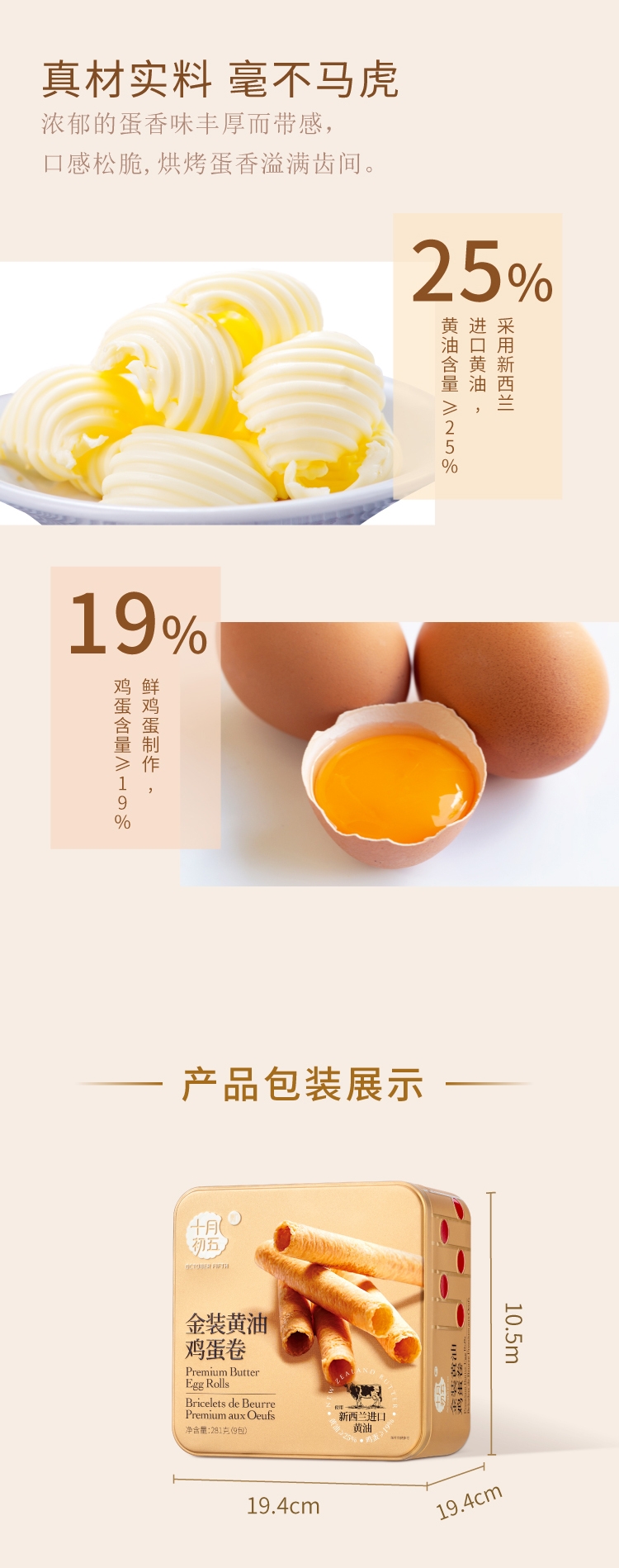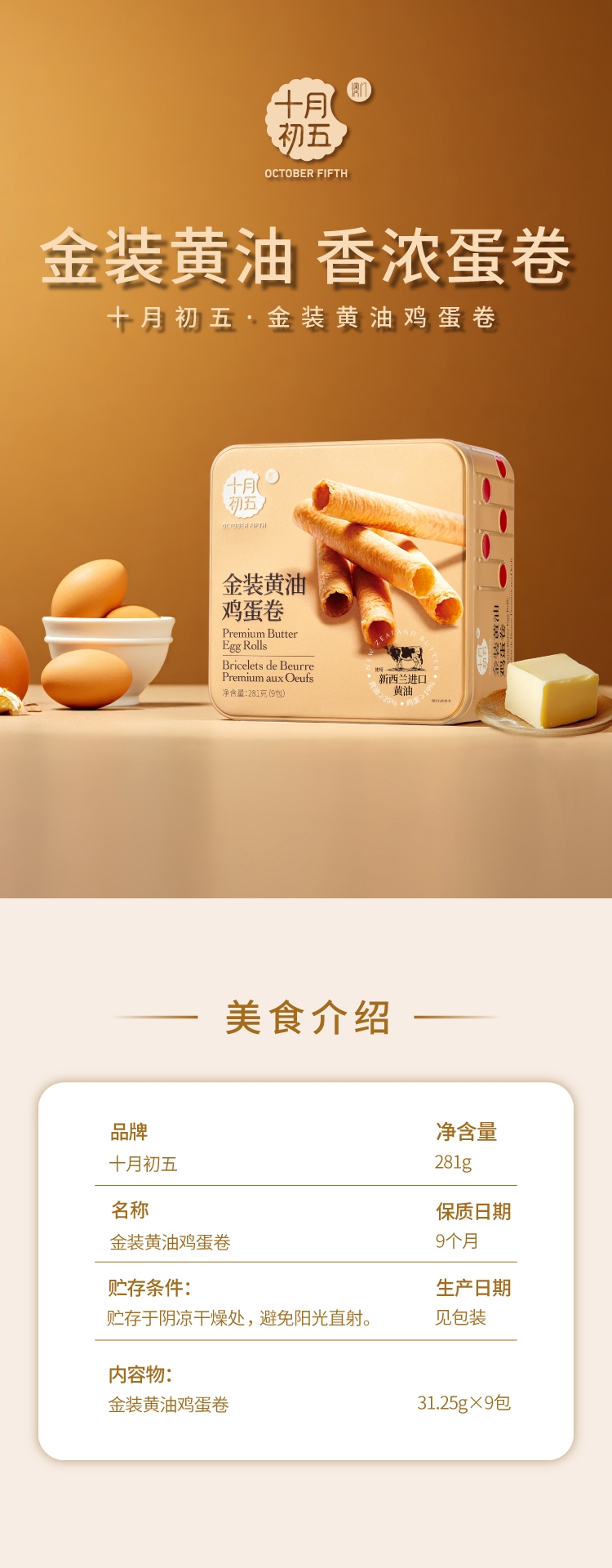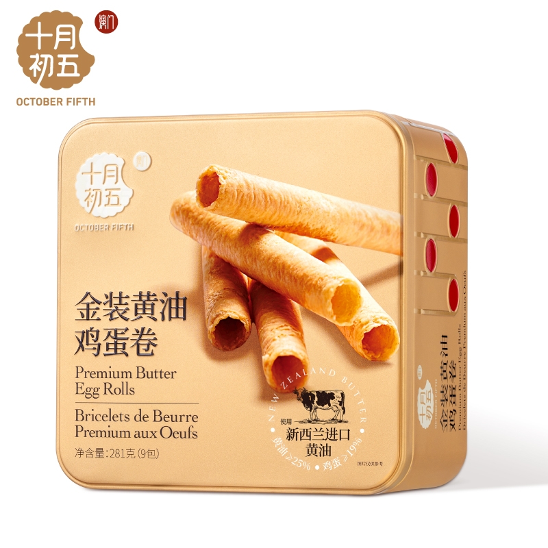 配置清单:十月初五-281g金装黄油鸡蛋卷【小方罐+精美手提袋】
