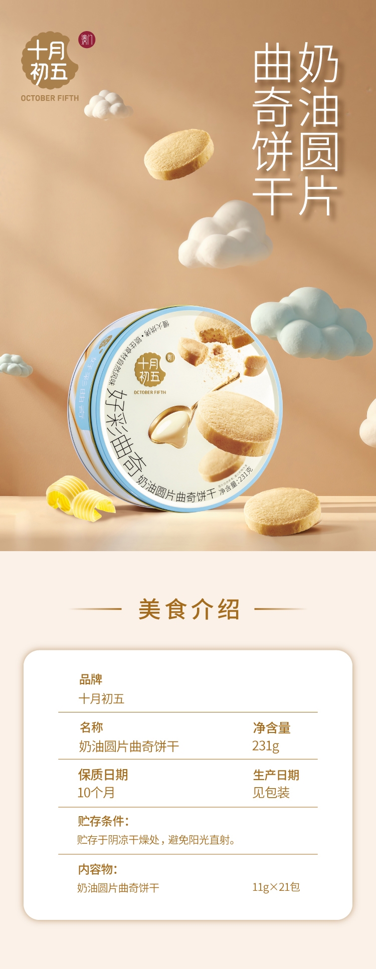 配置清单:十月初五-231g奶油圆片曲奇饼干【铁罐】