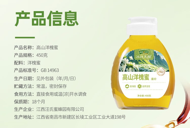 早餐牛奶甜品搭;挤压瓶装;洋槐蜜高山槐花蜜