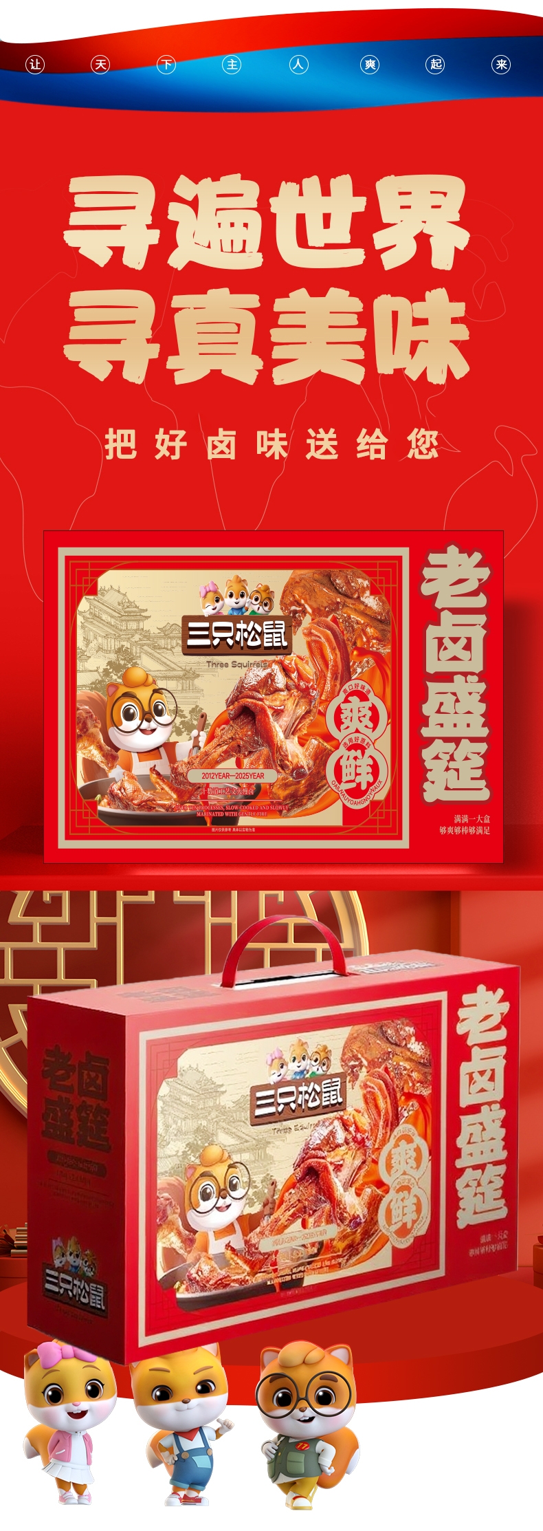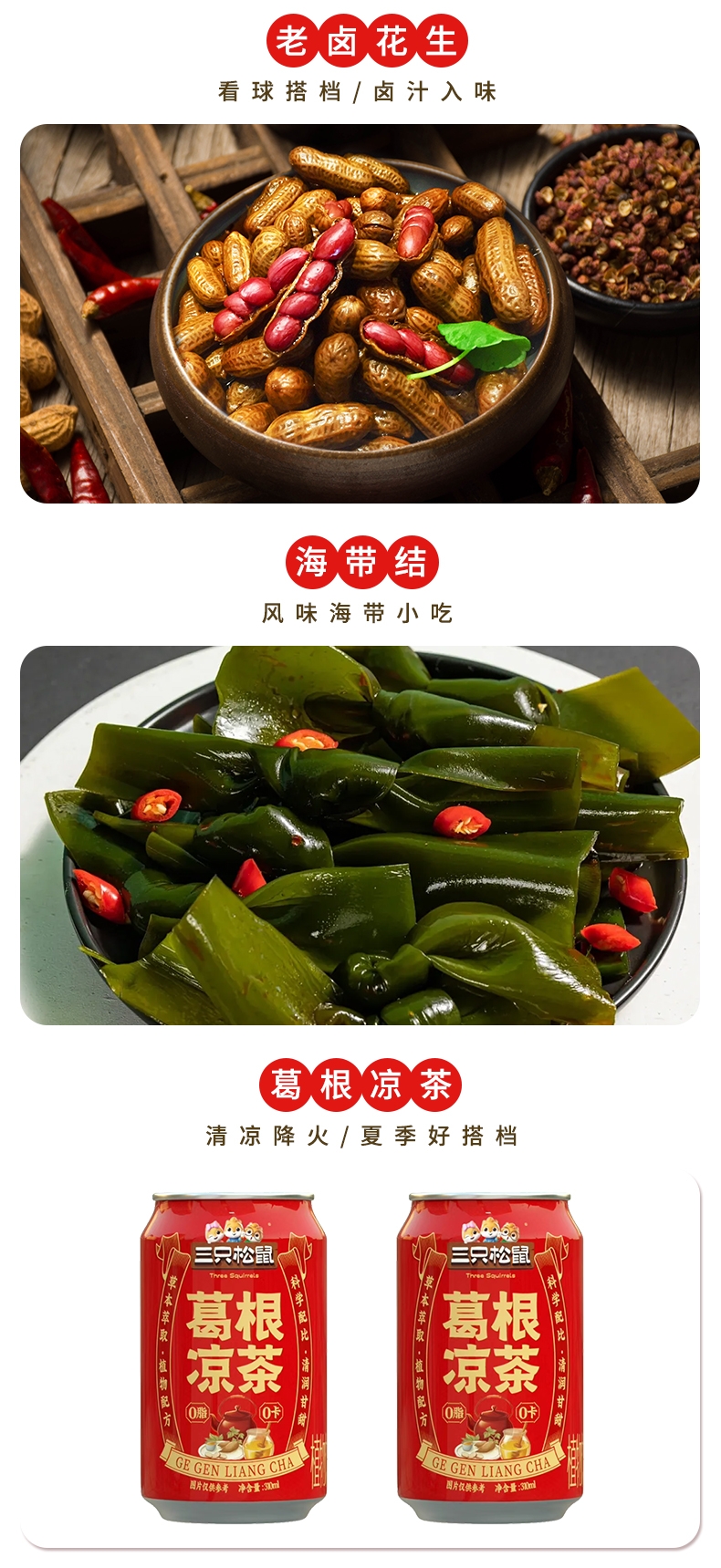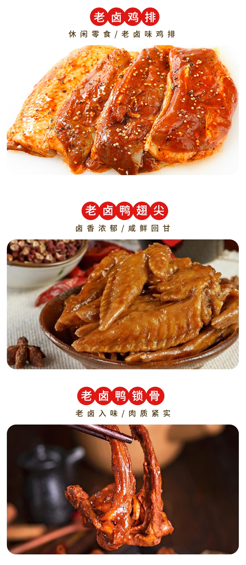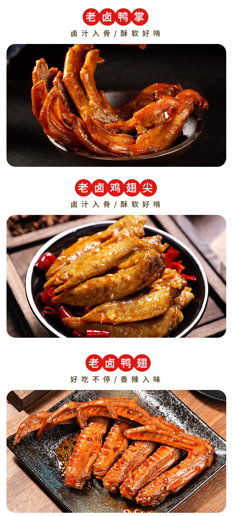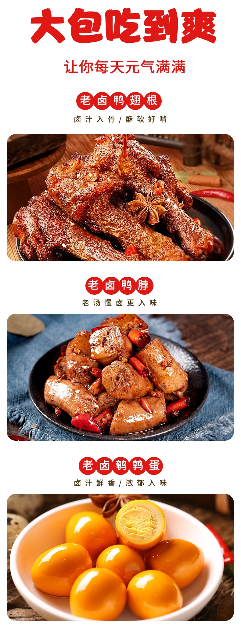配置清单:【三只松鼠】老卤鸭翅根30g*1 【三只松鼠】老卤鸭脖 15g*1 【三只松鼠】老卤鹌鹑蛋6g*5 【三只松鼠】老卤鸡排16g*1 【三只松鼠】老卤鸭翅尖8g*1 【三只松鼠】老卤鸭锁骨22g*1 【三只松鼠】老卤鸡翅尖20g*1 【三只松鼠】老卤鸭翅30g*1 【三只松鼠】老卤鸭掌23g*1 【三只松鼠】海带结60g*1 【三只松鼠】老卤花生香辣味200g*1 【三只松鼠】葛根凉茶310ml*2