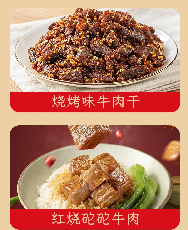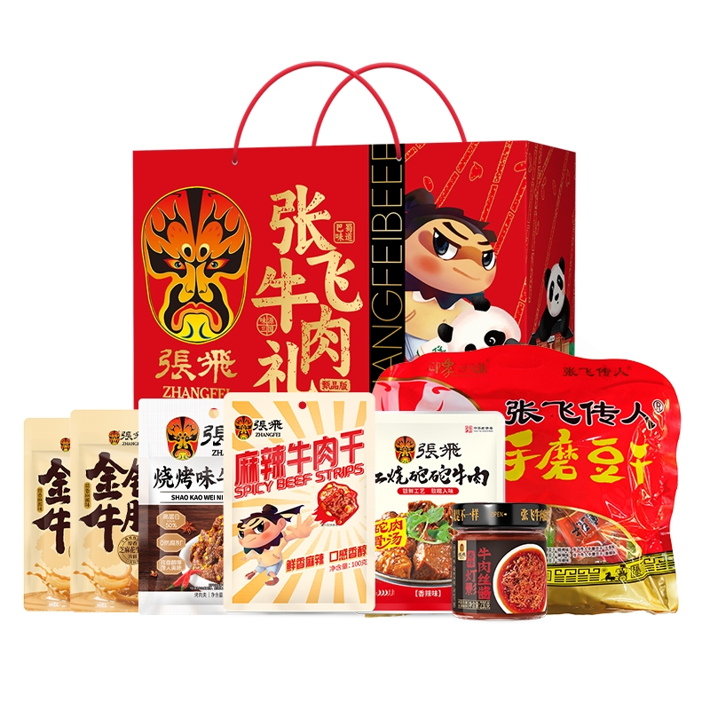 配置清单:张飞红烧坨坨牛肉香辣味188g*1 张飞麻辣牛肉干100g*1 张飞金钱牛 腩麻酱牛肉45g*1 张飞金钱牛腩麻酱牛肉45g*1 张飞传人什锦豆干460g*1 张飞烧烤牛肉干50g*1 张飞烧烤牛肉干50g*1 张飞灯影牛肉丝酱香辣味230g*1