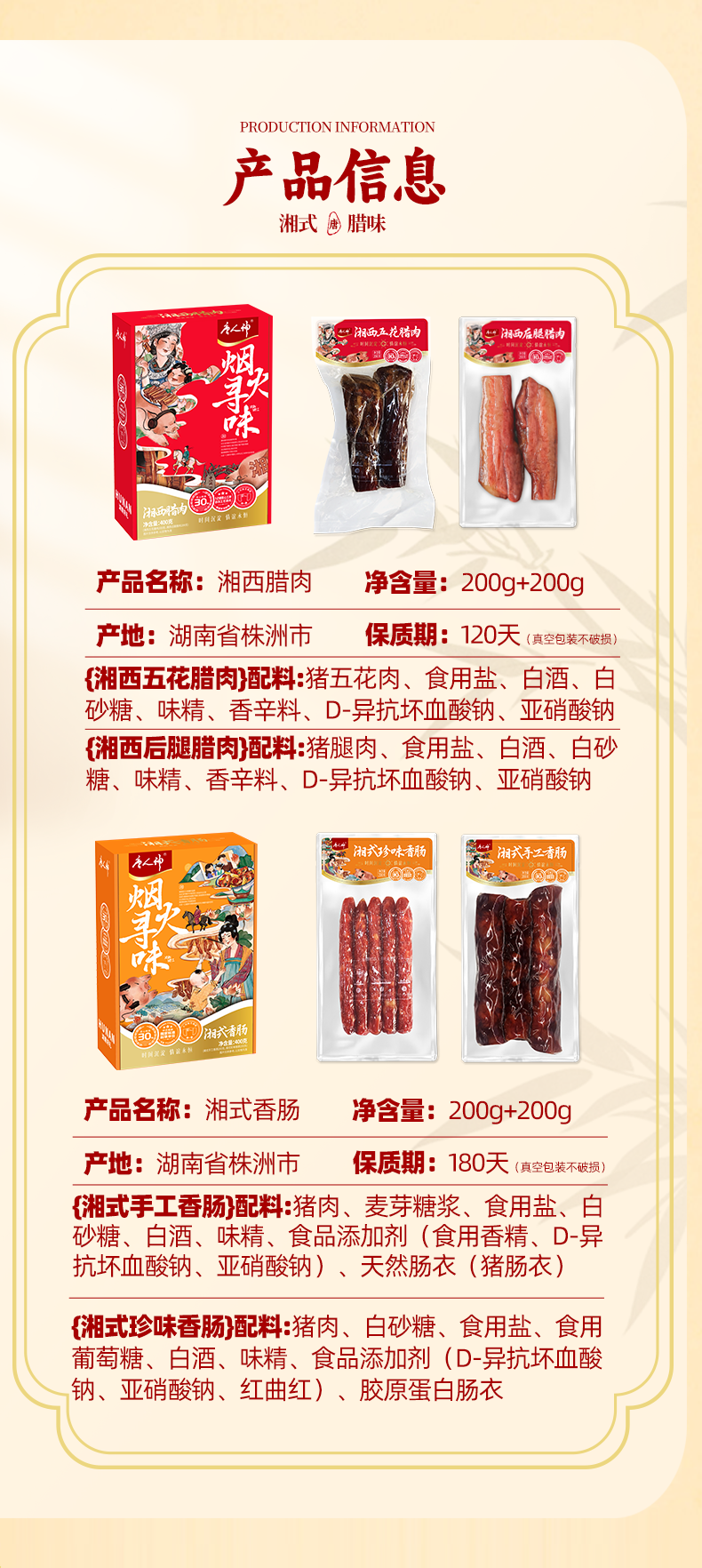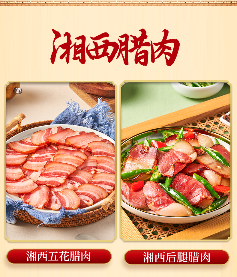 配置清单:湘西五花腊肉200克 湘西后腿腊肉200克