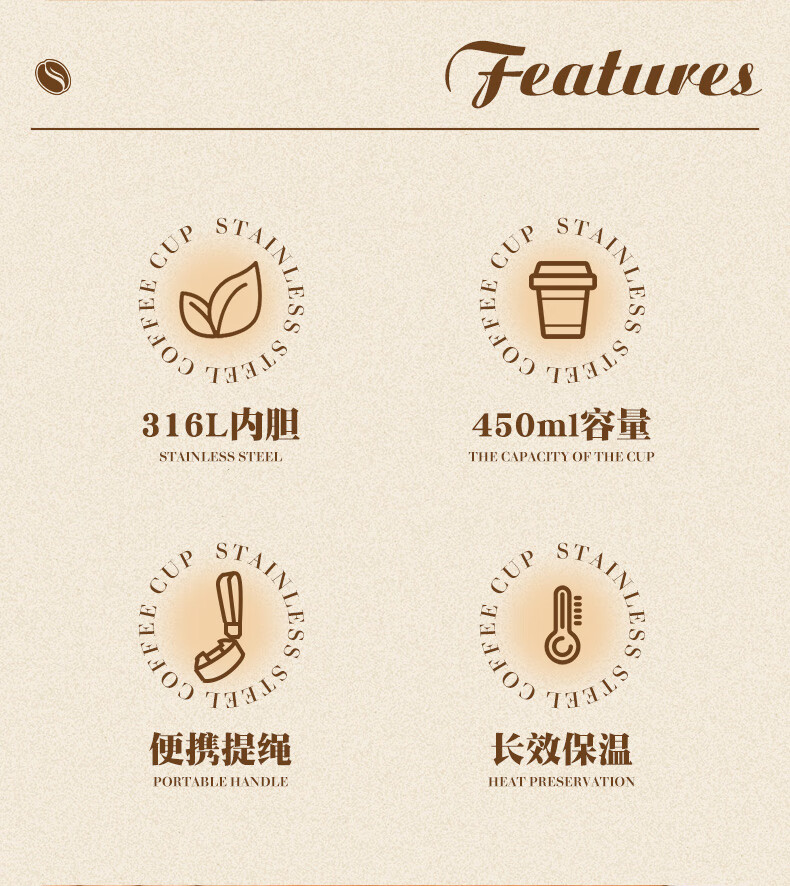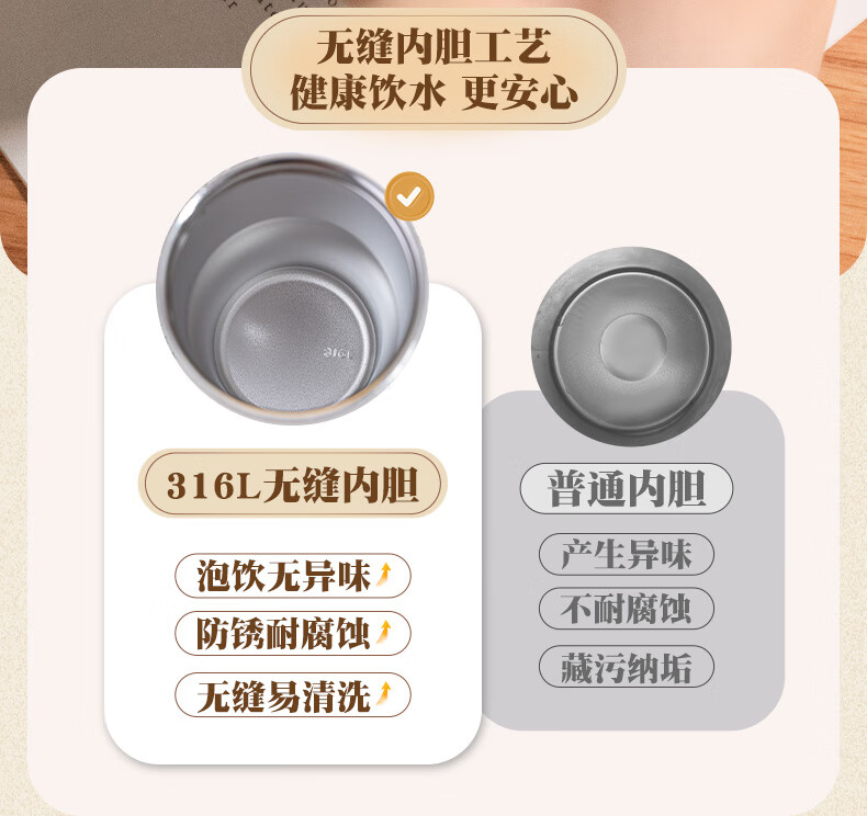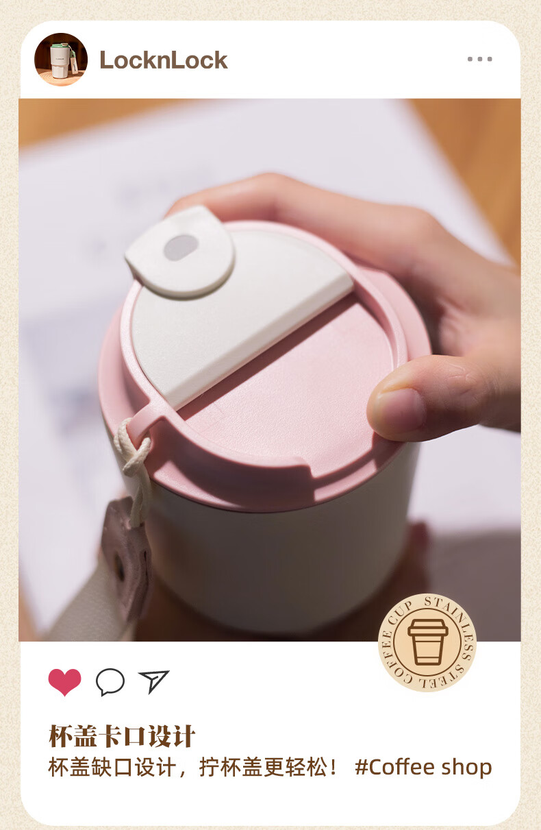 杯盖卡口设计杯盖缺口设计,拧杯盖更轻松!;敞口畅饮 冲泡不设限,花样饮品随心畅饮光滑杯口;大杯口更好清洗 饮品无残留,不易藏污纳垢