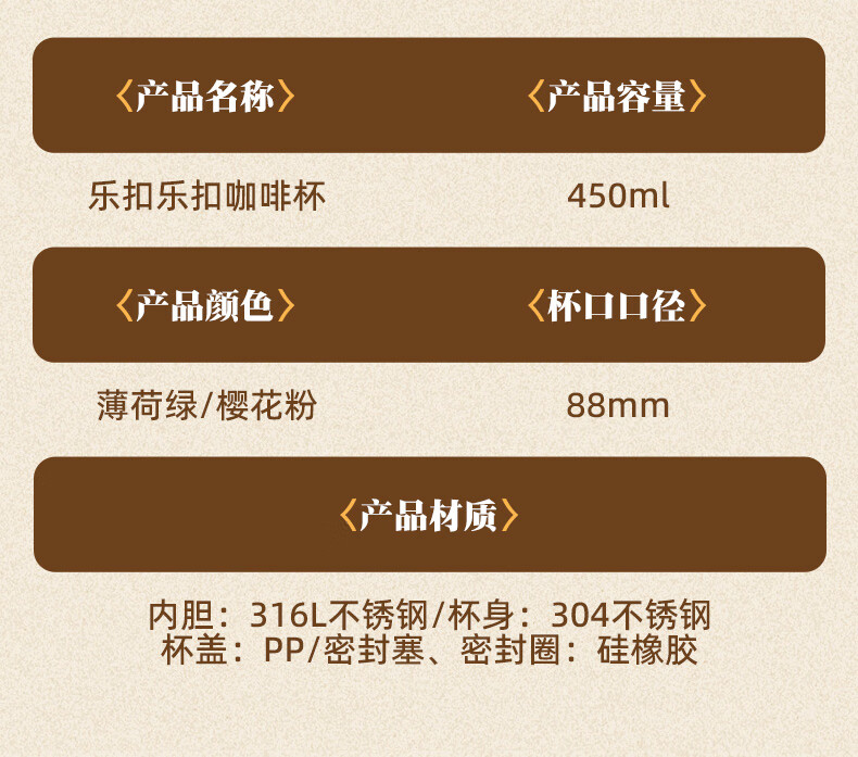 乐扣乐扣 保温杯便携咖啡杯随手杯LHC4340