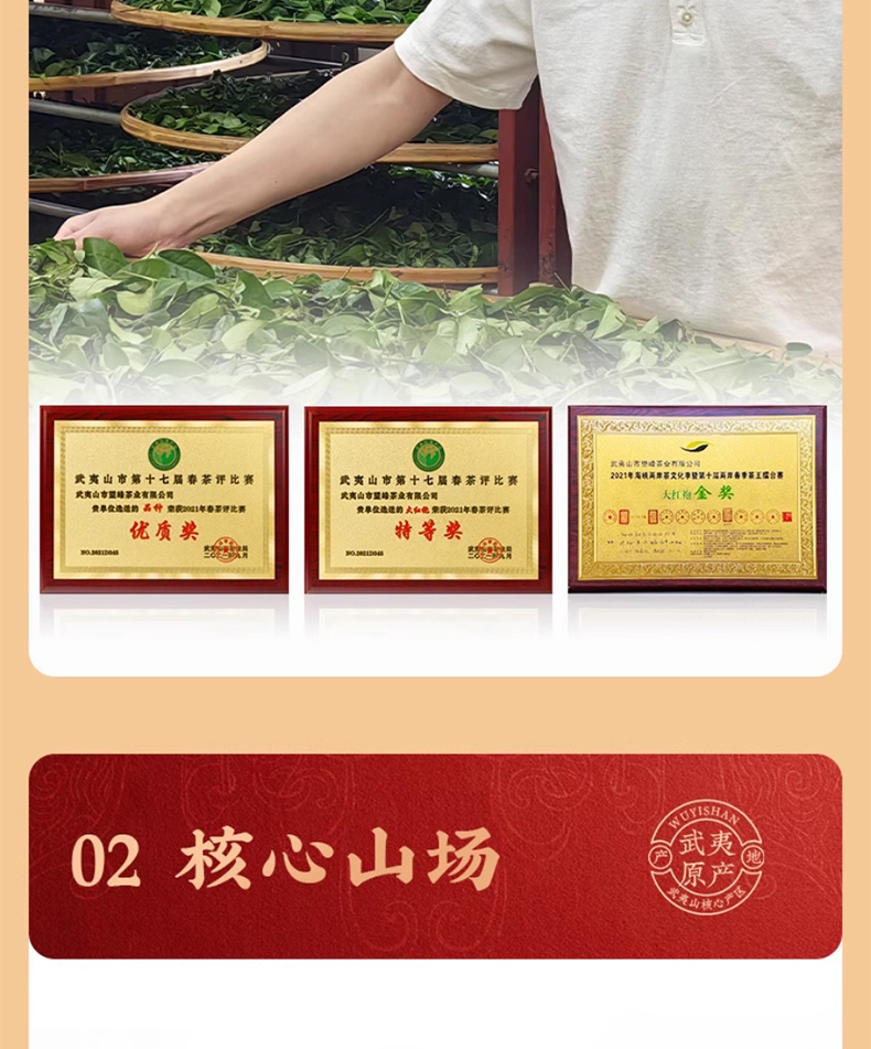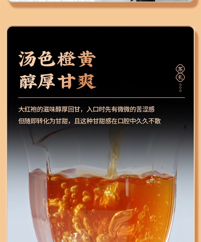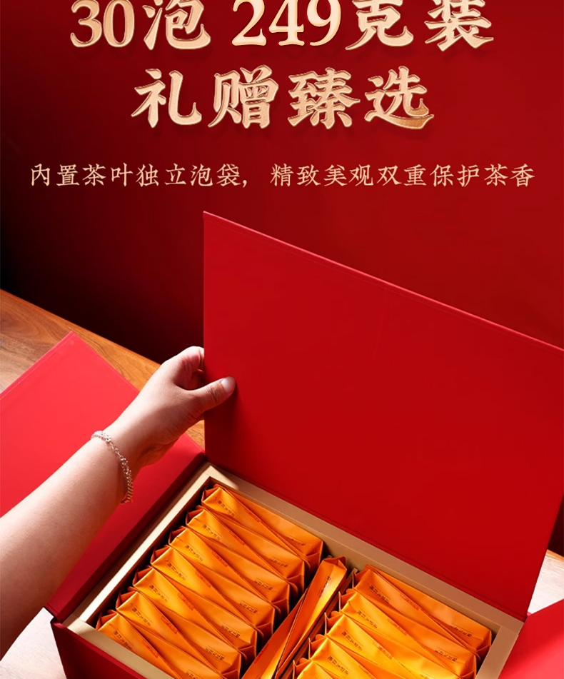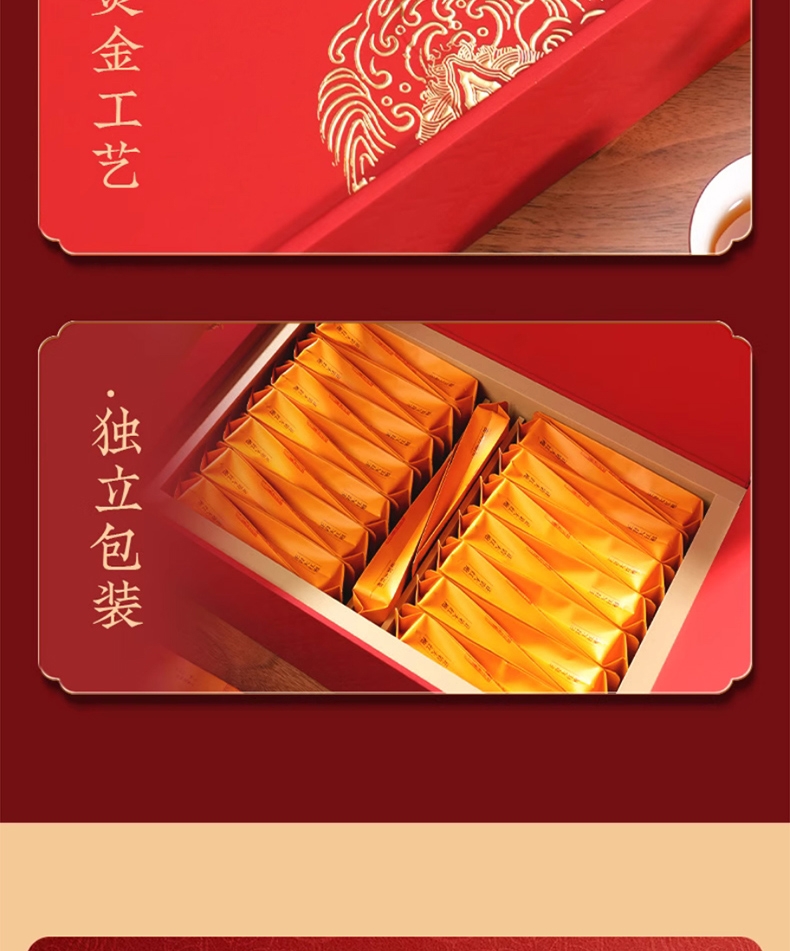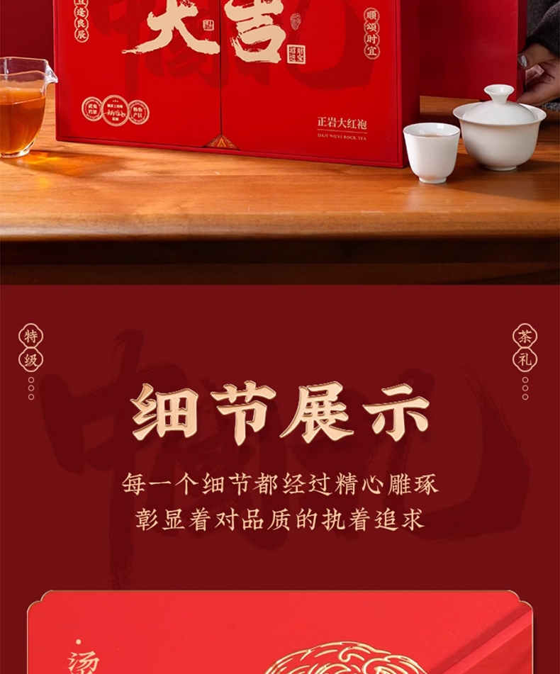 产自武夷山高山产区,原料优中选优;岩骨花香伴有栀子花香,醇厚顺滑,手工制作,古法烘焙;喜庆的大吉中国礼茶礼,走亲访友必备款伴手礼