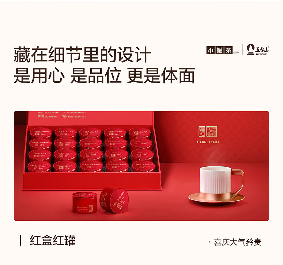特级品质、8款好茶;五台聚福、喜庆红盒红罐;公证封签、可查可证可信