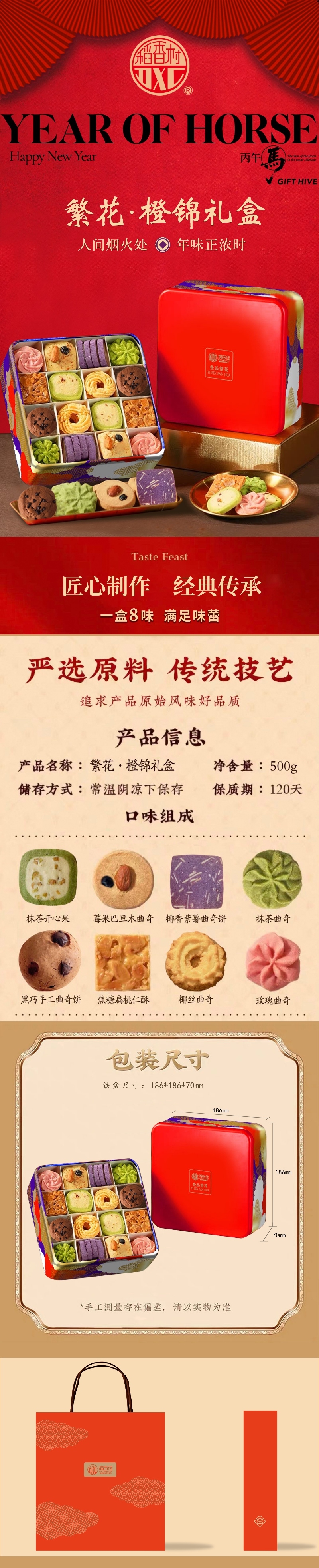 稻香村 曲奇繁花橙锦礼盒500g