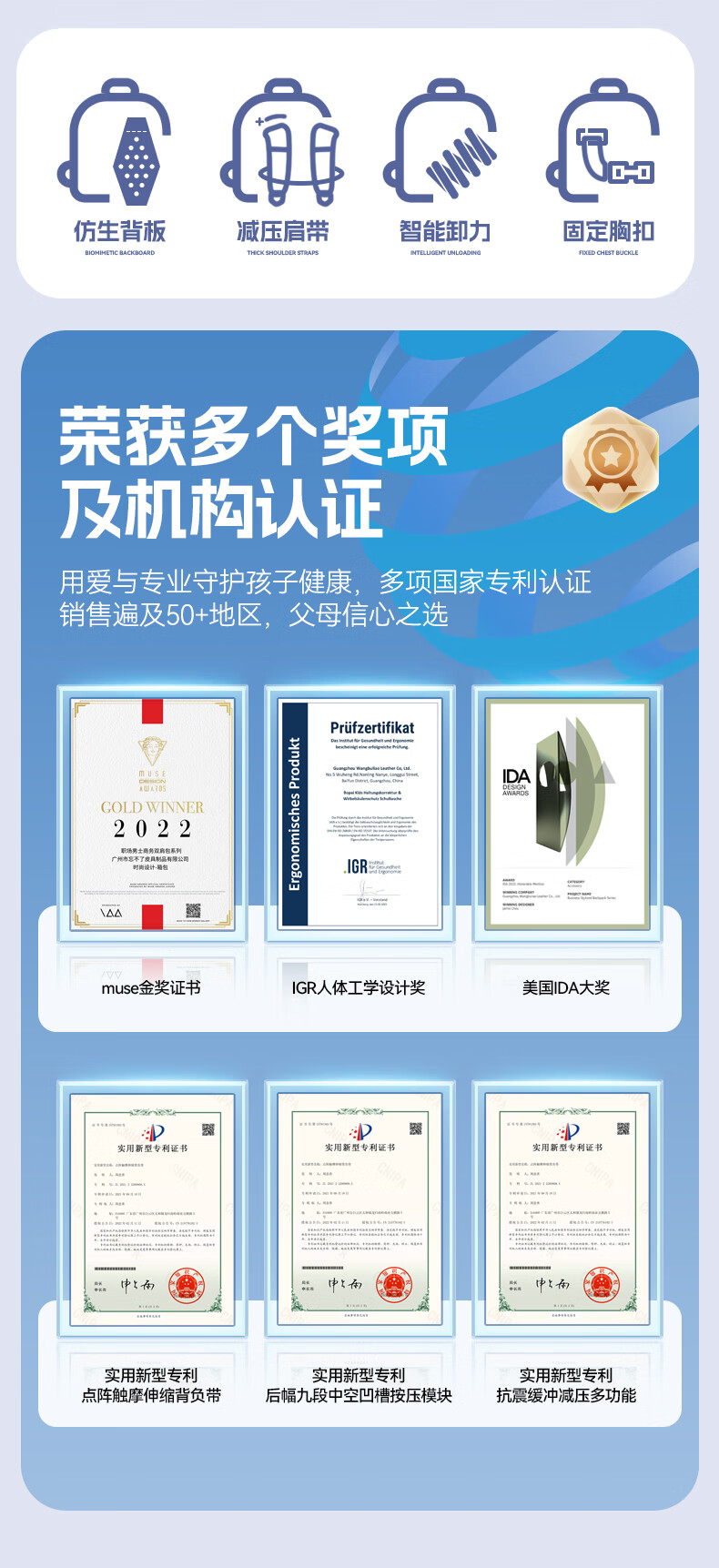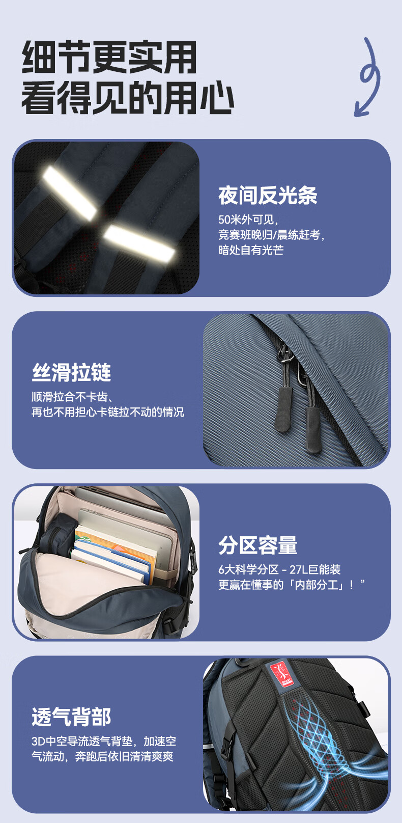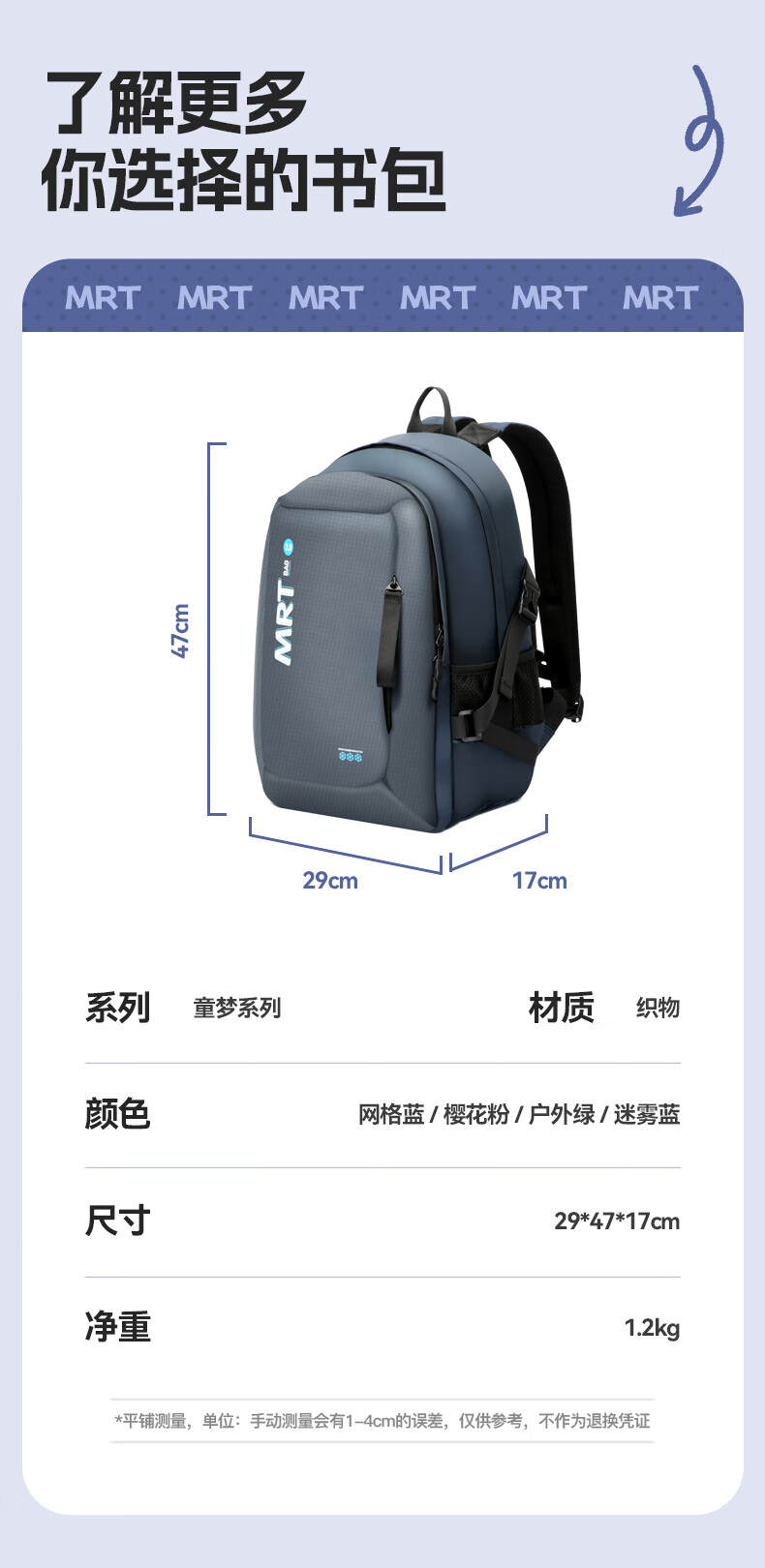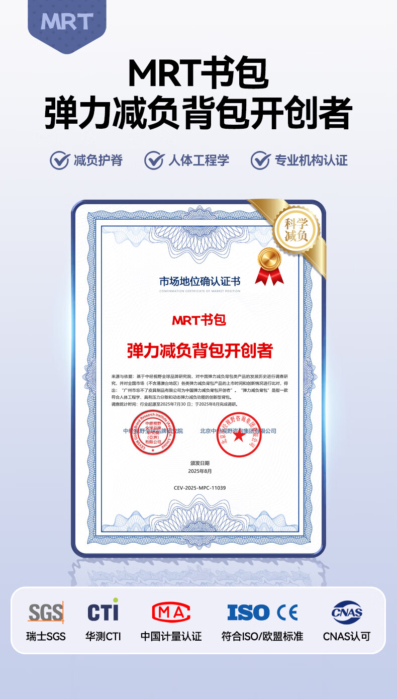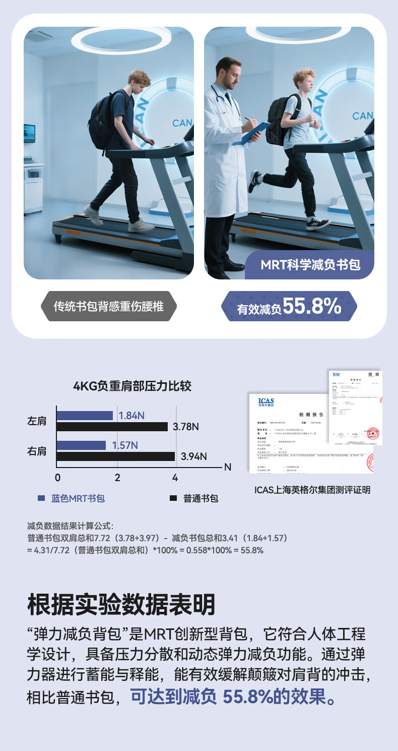 MRT科学减负系统,让成长举重若轻;护脊+弹簧卸力,撑住追梦者的腰杆;大容量大空间,大大小小都能装