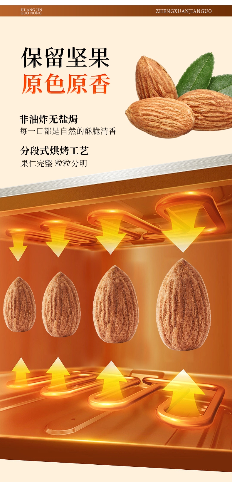 源自原味,口感酥脆;果仁修长,饱满完整;口感酥脆,保留坚果原色原香