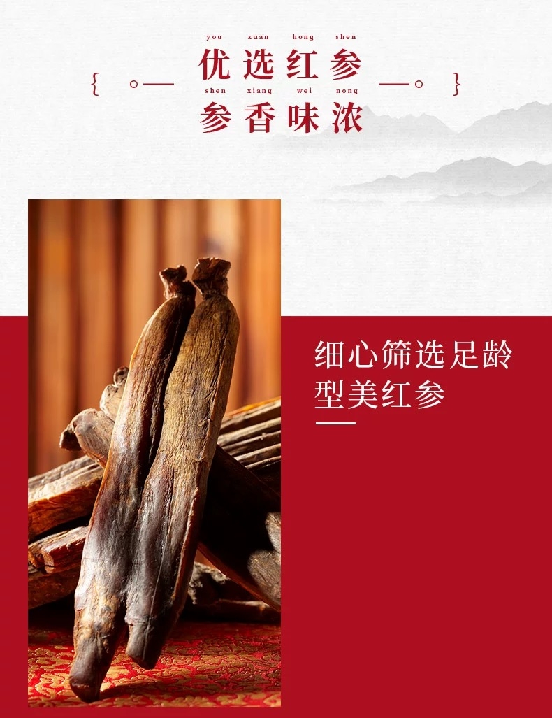 精选主根切片、细心筛选足龄;型美红参;关爱健康、多多益膳