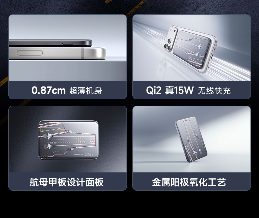 闪极&中国航母-福建舰联名,5000mAh礼盒;Qi2 真无线15W+有线20W Max;轻113g,薄8.7mm 金属阳极氧化工艺