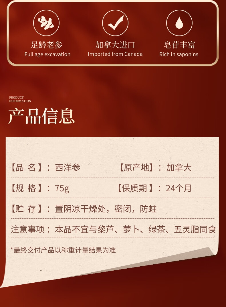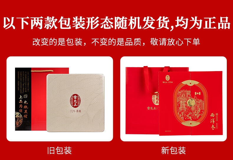 中华老字号,三百年实力企业品牌;加拿大进口足龄高品质参;包装精美,适合商务往来馈赠