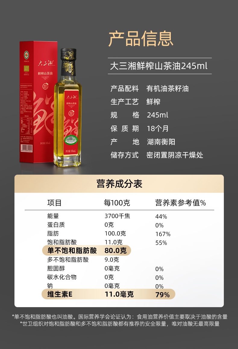 大三湘 鲜果鲜榨山茶油245ml