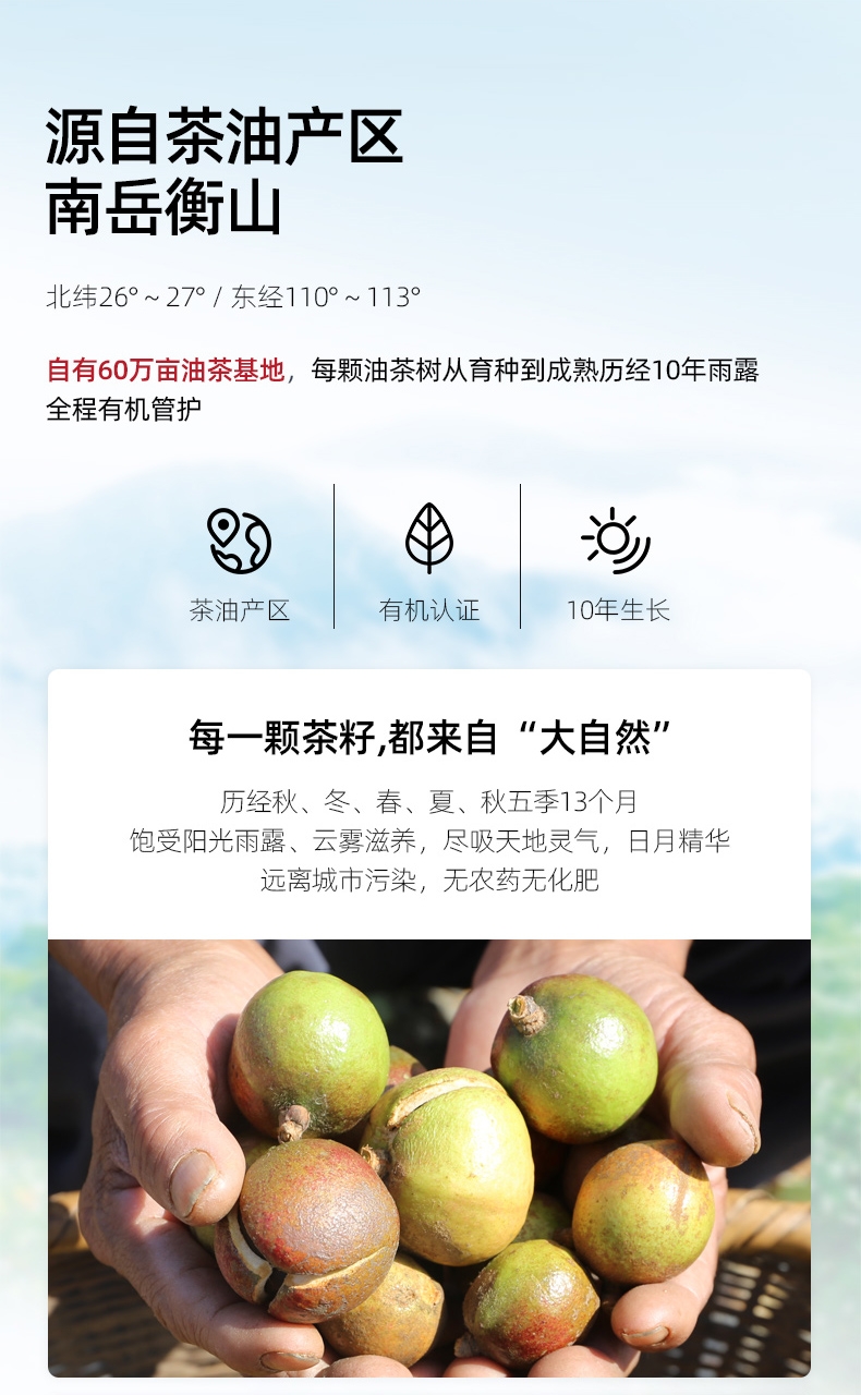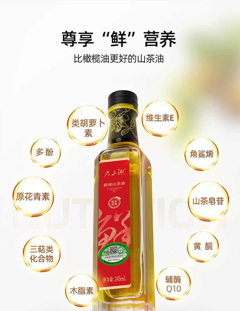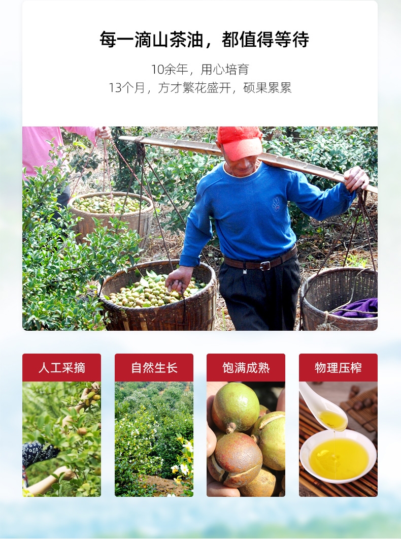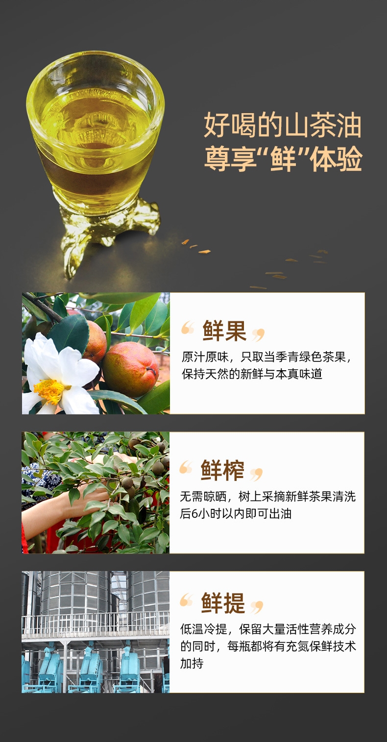 鲜果鲜榨 保留营养;直接喝的山茶油;自然纯粹,滴滴精华