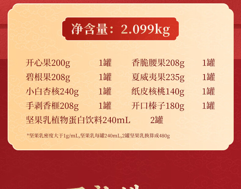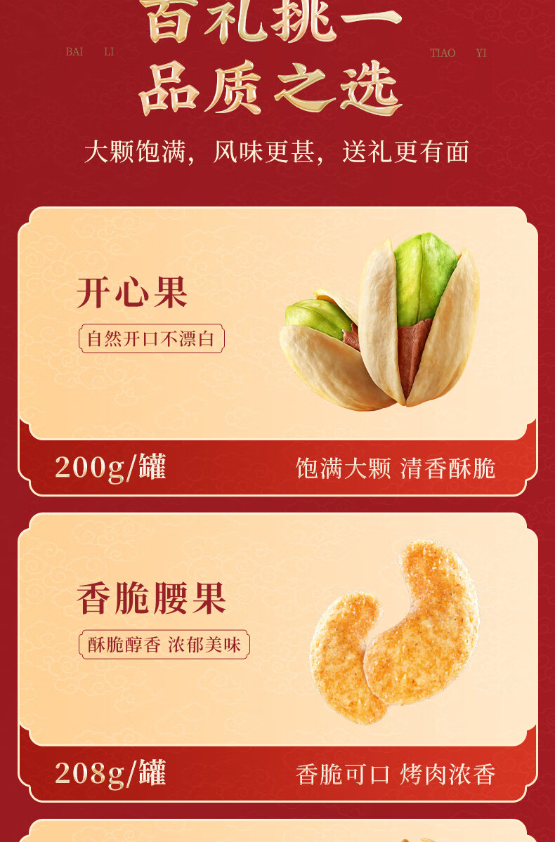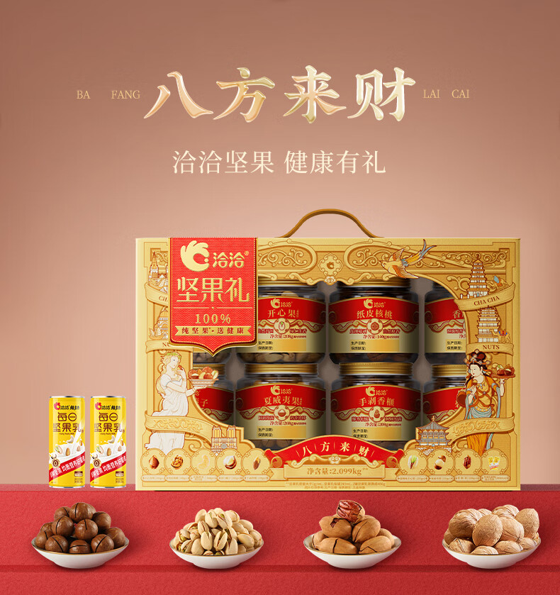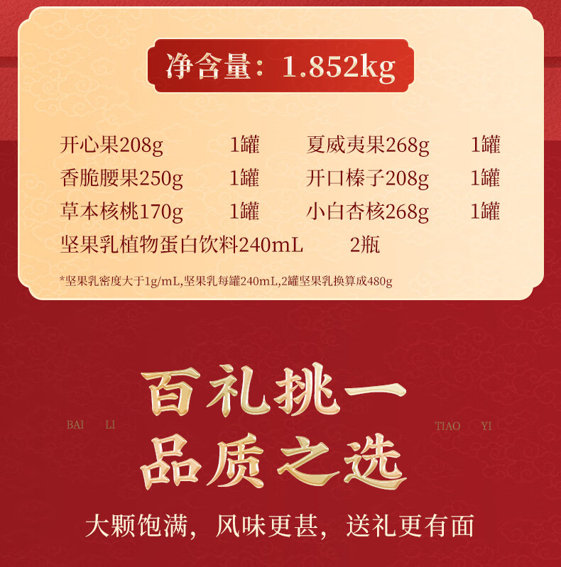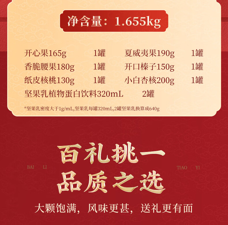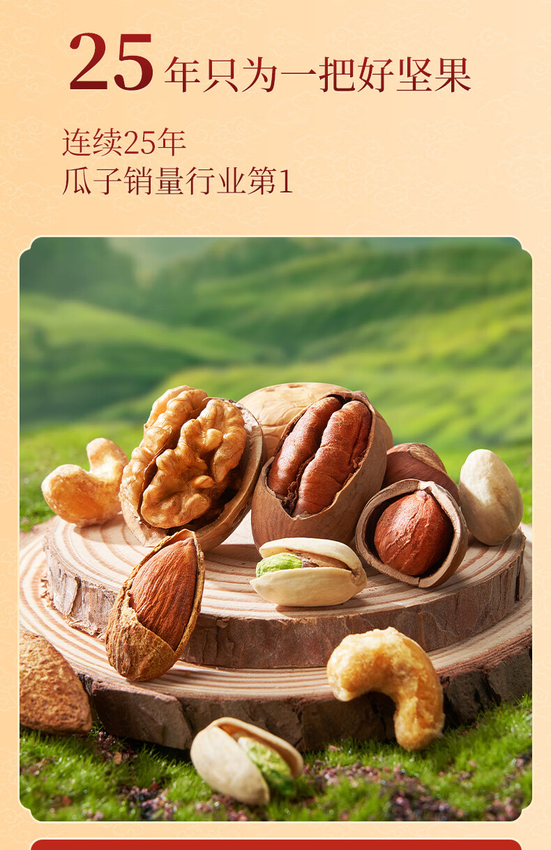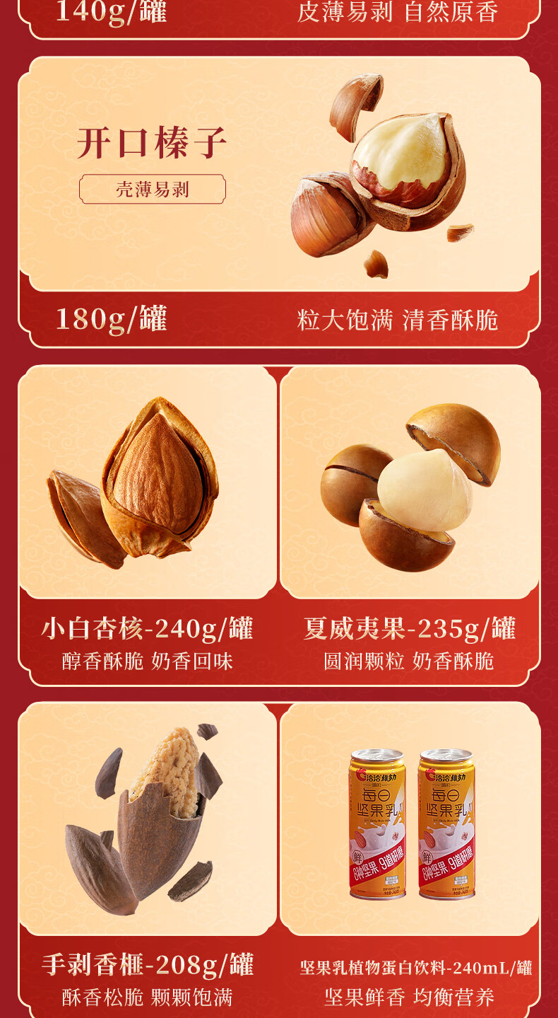 知名品牌;6罐纯坚果+2罐坚果乳,100%纯坚果更健康;每颗坚果当季采摘、颗粒饱满均匀、口感香脆