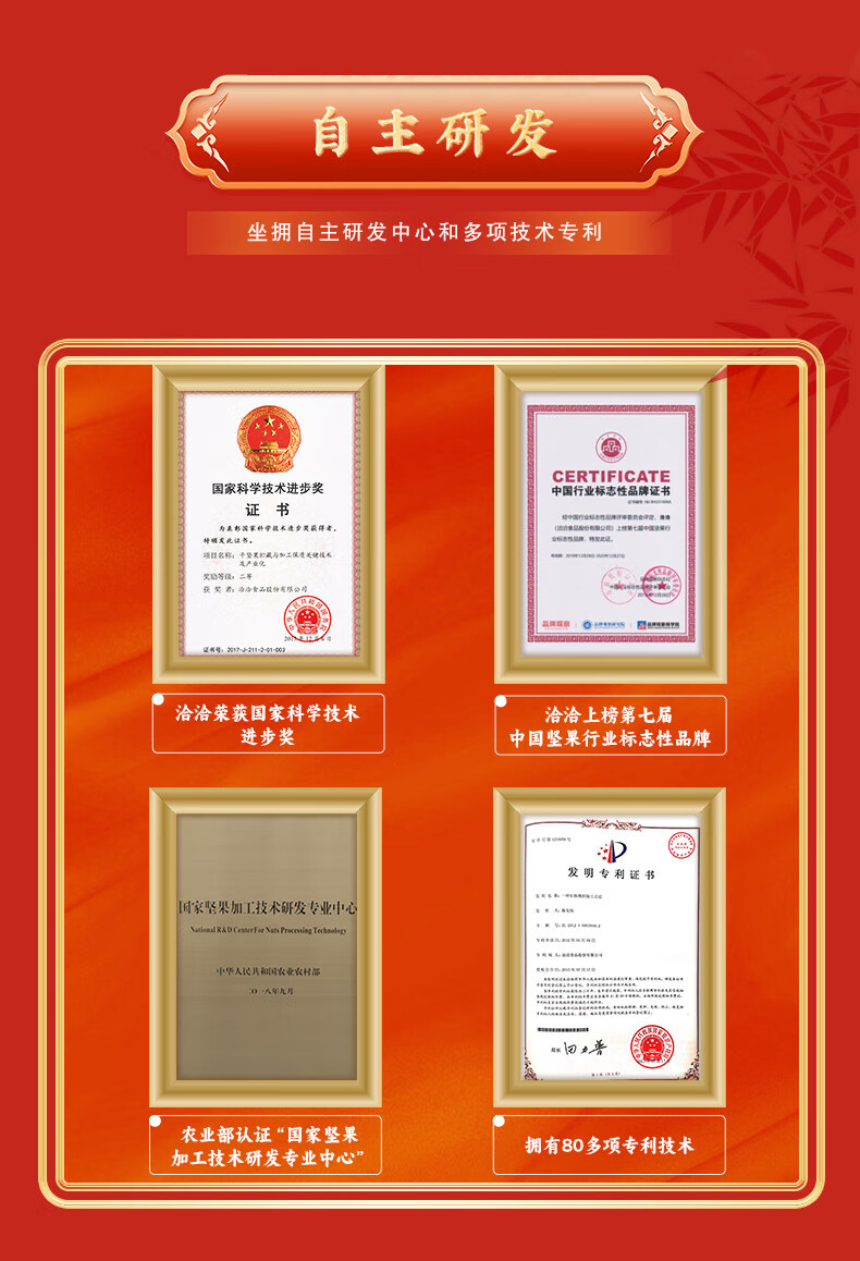知名品牌; 每颗坚果当季采摘、颗粒饱满均匀、口感香脆;保鲜技术领先,品质更健康