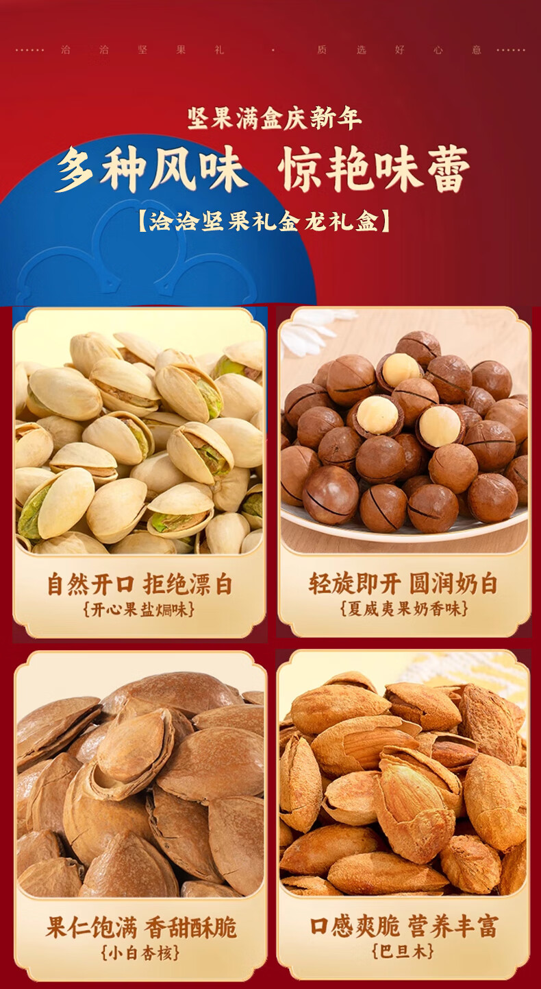 知名品牌 ;每颗坚果当季采摘、颗粒饱满均匀、口感香脆;保鲜技术领先,品质更健康