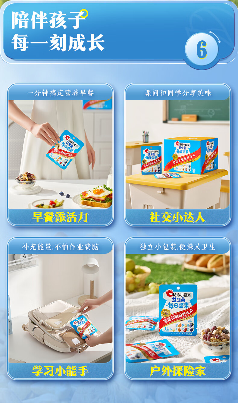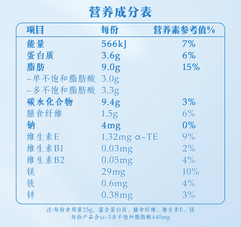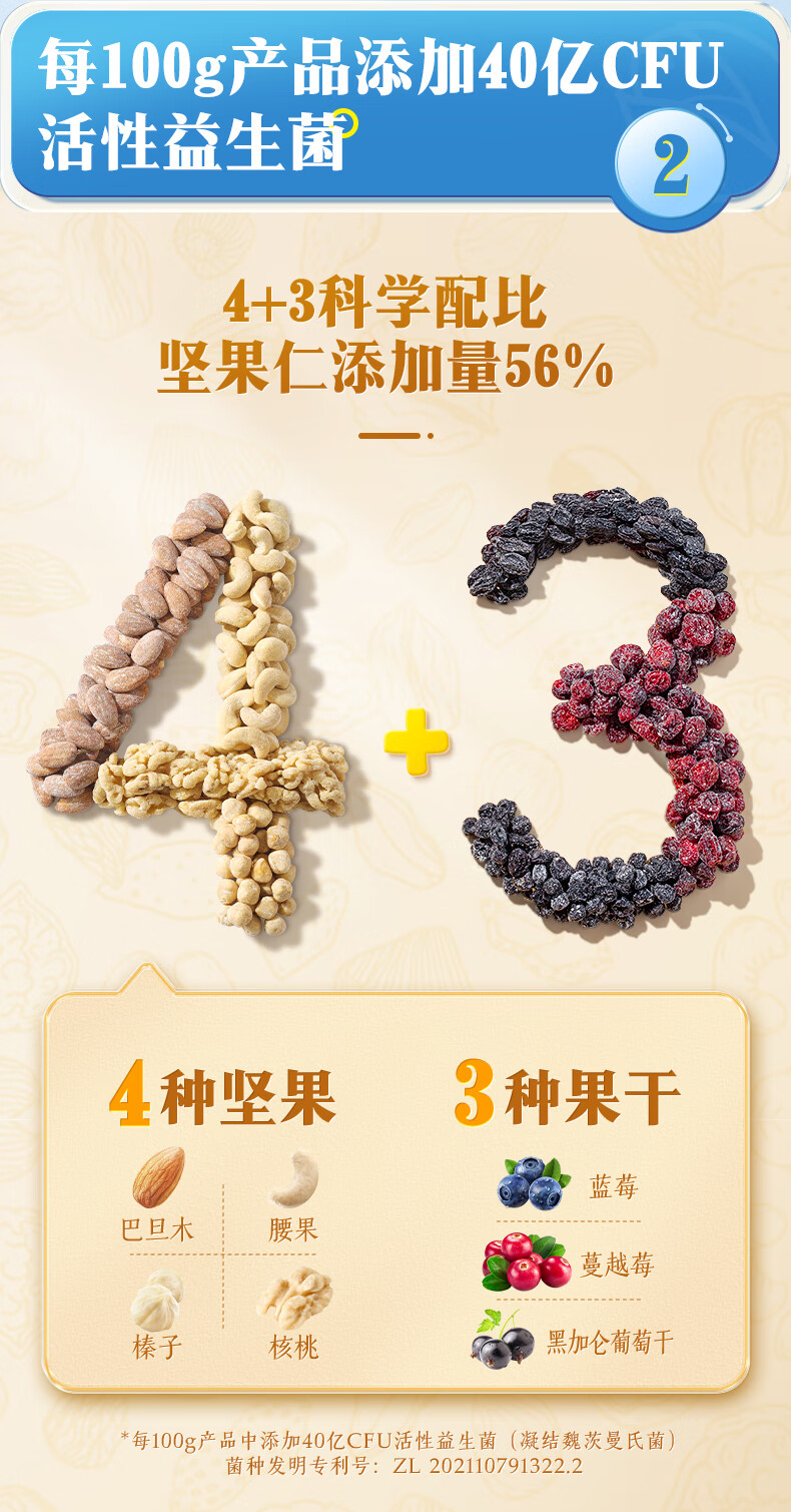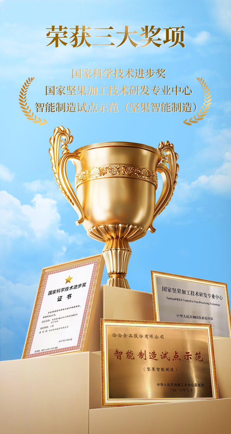 0添加白砂糖。好吃更健康,美味0负担;特别添加40亿洽洽专利活性益生菌/100g;100%当季采摘坚果:奶粉般保鲜包装保留坚果酥脆口
