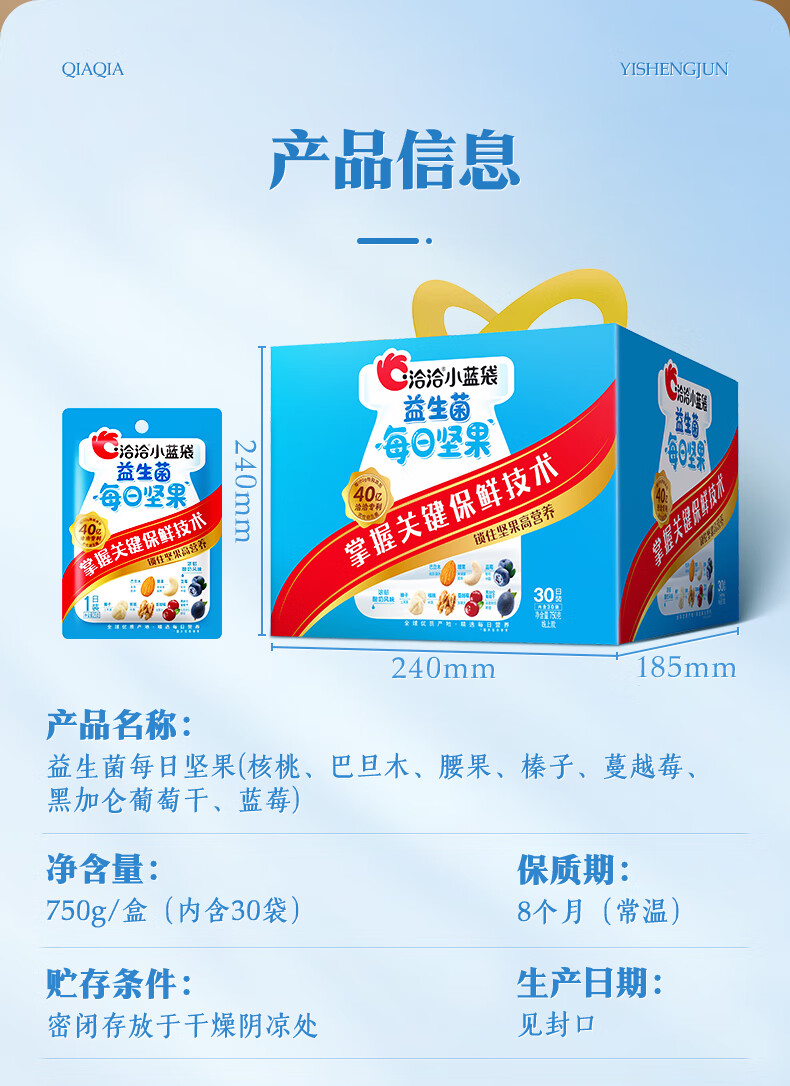 洽洽 小蓝袋益生菌每日坚果30日装