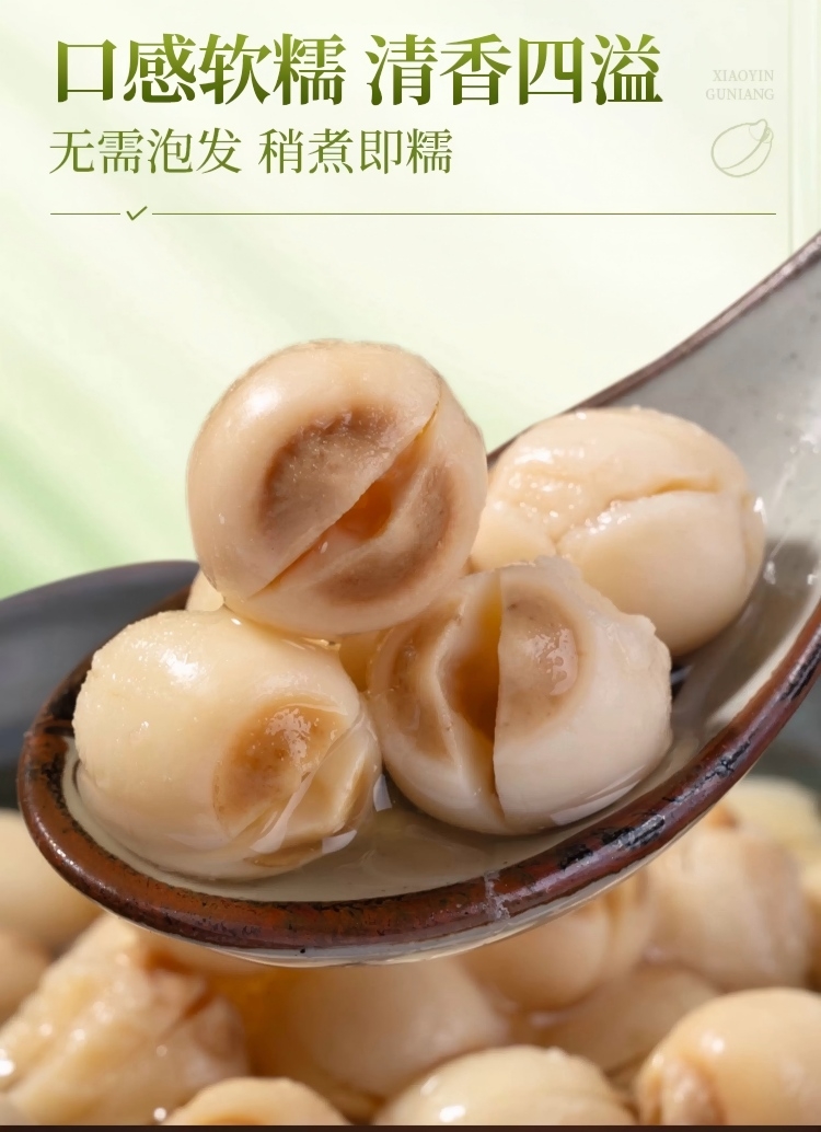 通芯无芯食用便捷,品质上乘形态饱满;口感粉糯风味清甜;用途广泛百搭美味,干货耐储食用安心