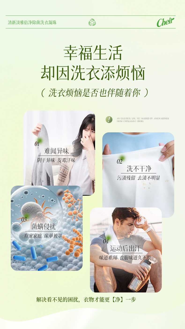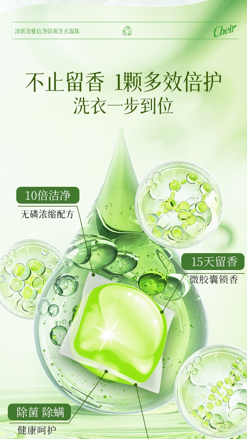 Cheir 清新淡雅倍净除菌洗衣凝珠8g*50颗