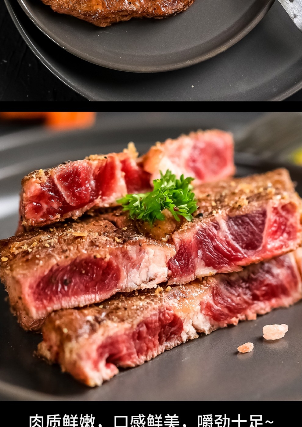 配置清单:1.原切菲力牛排180g*1袋 2.原切沙朗牛排180g*1袋 3.原切西冷牛排180g*1袋 4.原切牛肉饼120g*1袋