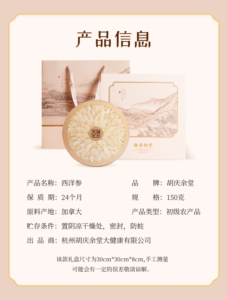 胡庆余堂 西洋参圆盘150g礼盒装